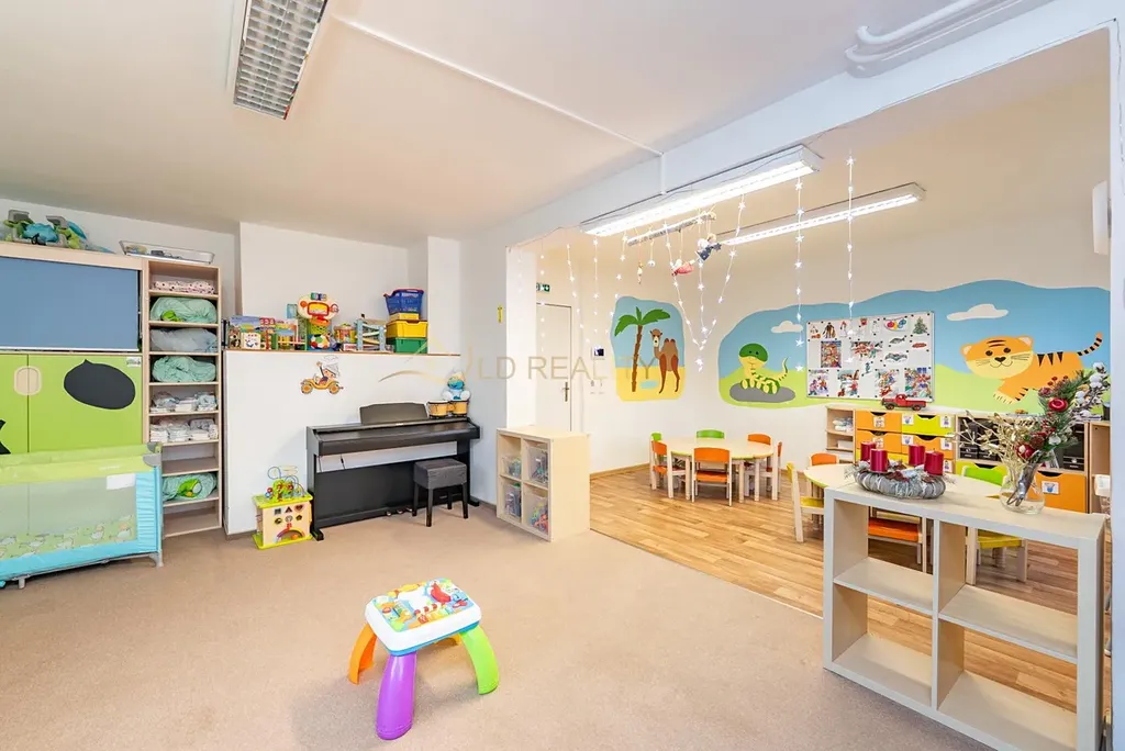 V přízemí a 1.patře domu jsou prostory momentálně využívané jako jesle, s možností úpravy na byty a zázemí. V přízemí se nachází vstup se zádveřím, šatna, 2 místnosti, soc, zázemí, kotelna, vstup na zahradu. V 1.patře je kuchyně, soc. zázemí, kancelář, velká herna s možností přepažení na dvě obytné místnosti, napojení na krbová kamna.