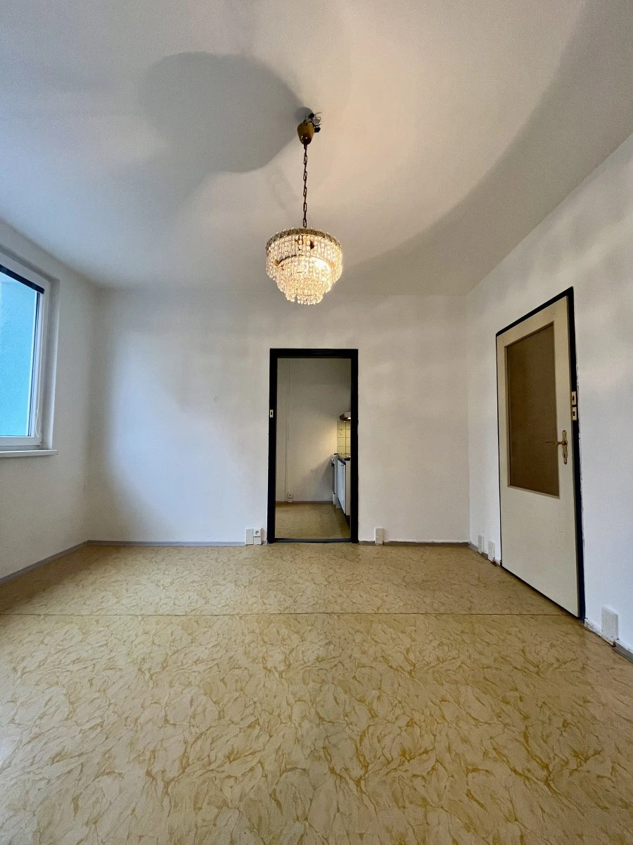 Bytová jednotka nabízí dva pokoje a jeden z nich je neprůchozí.