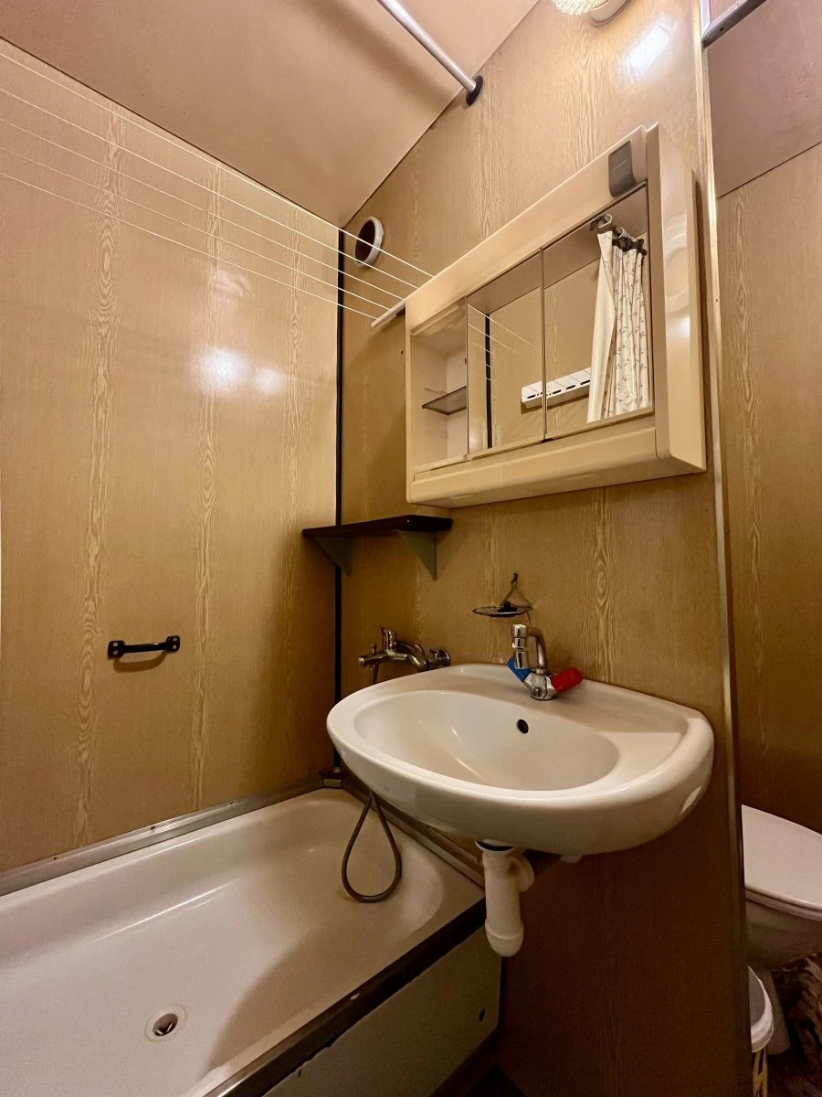 V koupelně je vana. Záchod je umístěn samostaně za koupelnou.