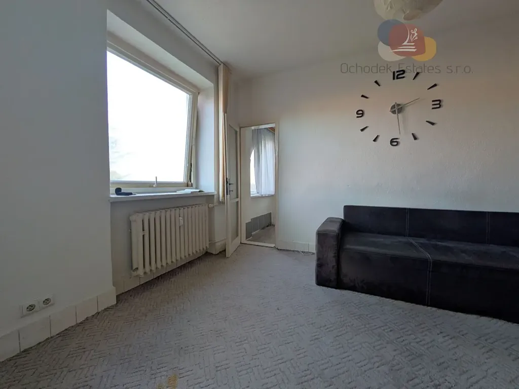 Po vstupu do bytu se ocitnete v malé, ale praktické chodbě. Z chodby již vstupujete do hlavní obytné místnosti, ve které vás ihned zaujme velkorysý kuchyňský kout a zároveň dostatek místa na vytvoření vaší odpočinkové zóny. Hnedle dveře do komory, dveře do koupelny a na samostatnou toaletu. Důležitou místností je neprůchozí ložnice. A i když byt není nafukovací, nachází se v něm malá místnůstka, která čeká na uplatnění nového majitele, třeba k vytvoření “zašívárny”.