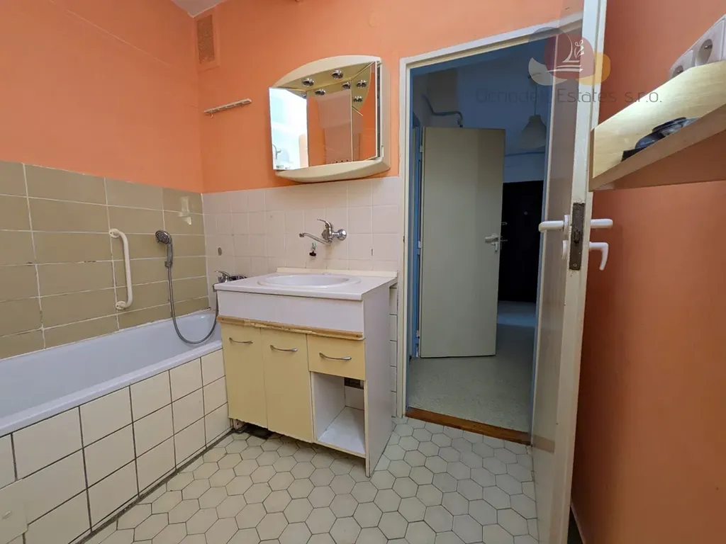 Byt o dispozici 2kk o výměře 42 m2 se nachází v šestém nadzemním podlaží bytového domu. První důležitou výhodou je výtah. Nebudete mít tedy problém se ke svému bytu pohodlně dostat. Je však nutno zmínit, že dům není bezbariérový. Byt se prodává v původním plně funkčním stavu. Ovšem rekonstrukce by mu jistě slušela. Otevírá se zde tedy možnost upustit uzdu fantazie nového majitele a přizpůsobit si byt dle svých představ.