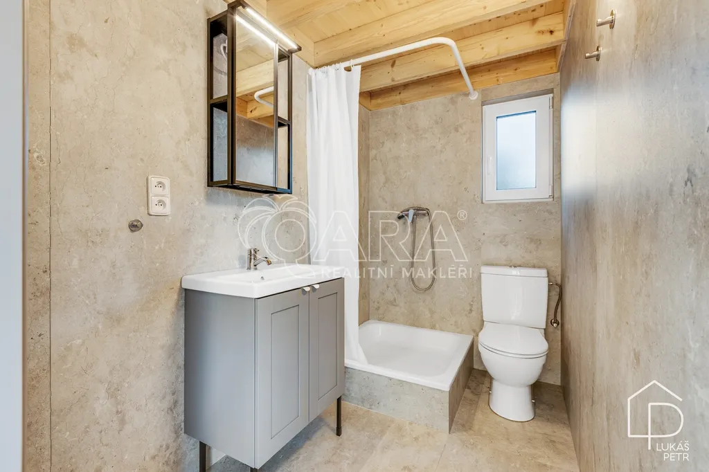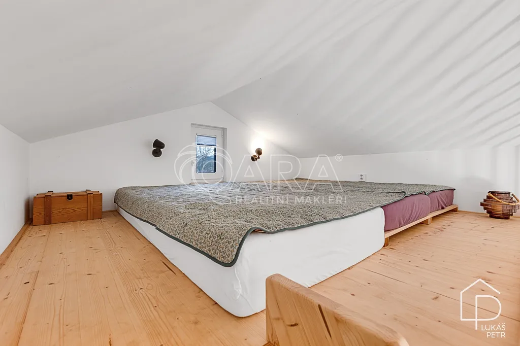 Celoroční tiny house s mezipatrem, který není řešený jako sezónní chatka, ale jako poctivě postavená stavba s normální skladbou konstrukcí a technikou, která dává smysl i pro dlouhodobé užívání. Dům má délku 8 metrů, zastavěnou plochu 28 m² a díky mezipatru vychází užitná plocha zhruba na 32 m². Půdorys je navržený účelně a interiér je využitý do posledního metru. Dům je starý zhruba jeden rok a je ve stavu téměř novostavby.