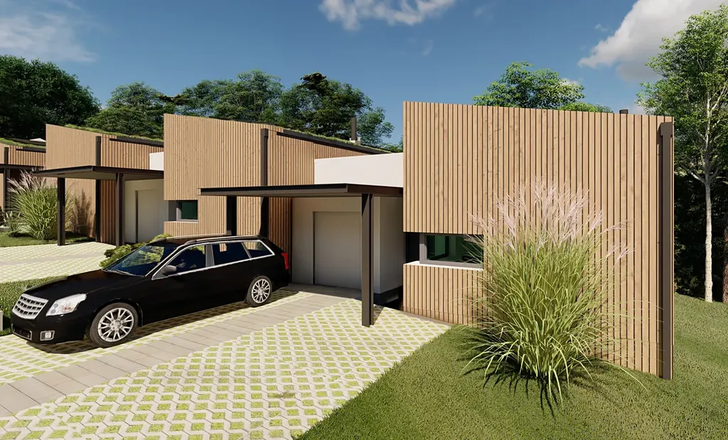 Nově navržena novostavba řadových rodinných domů se bude nacházet po pravé straně ul. Antonína Václavíka před zatáčkou směřující k Hotelu Pohoda.