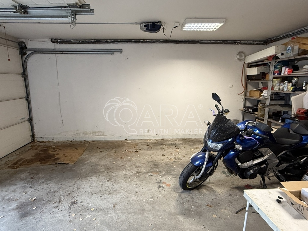 Garáž o velikosti 30 m2 se zavedenou elektřinou - světla a zásuvky. Díky svým rozměrům se zde vejdou i větší vozy včetně SUV. Vnitřní šířka garáže je 5 m a délka 5,9 m. Dvoje elektricky ovládaná garážová vrata, každé mají 2,3 metrů na šířku a 2 metry na výšku. Nájem činí 4.000 Kč včetně zálohy na elektřinu. Počítejte ještě s úhradou vratné zálohy na garážová vrata a úhradou kauce ve výši 4.000 Kč. Rád vám ji ukážu osobně – při prohlídce získáte mnohem lepší představu než z jakýchkoliv fotografií.