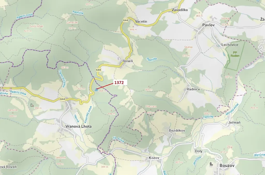 Lesní pozemek o výměře 5 978 m2, parcelní číslo 1372, podíl 1/1, katastrální území Vranová, obec Vranová Lhota, obec s rozšířenou působností Moravská Třebová, okres Svitavy, Pardubický kraj. Částečně po těžbě.