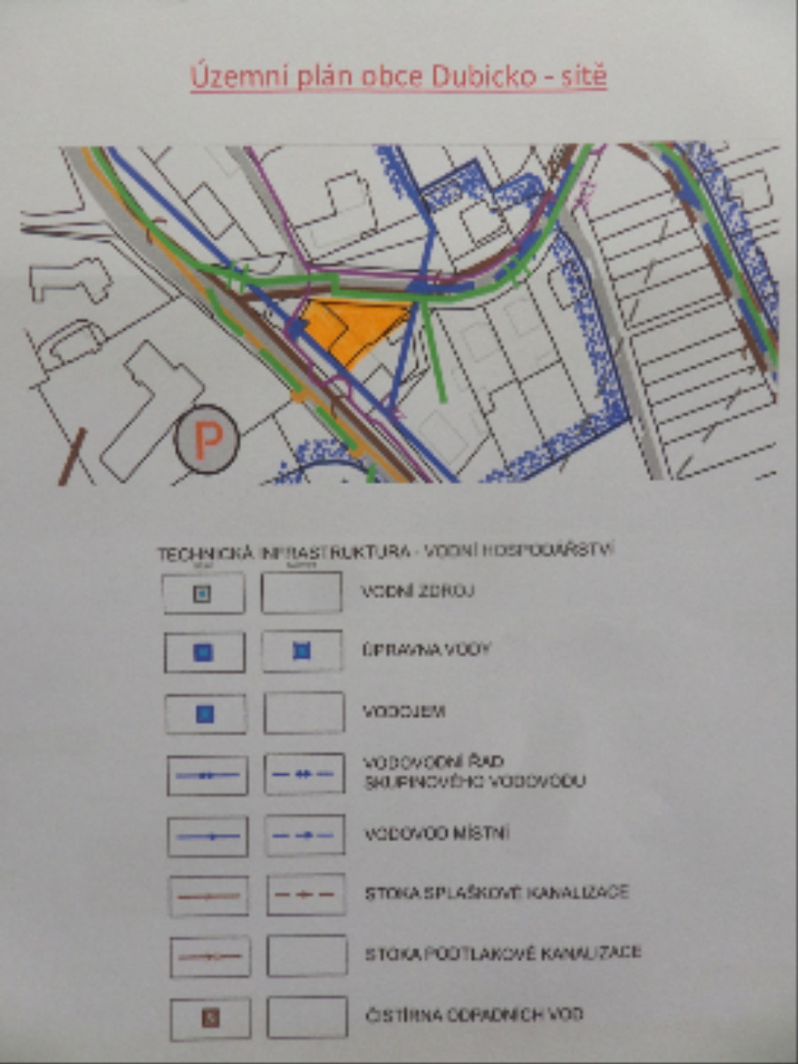 Z hlediska sítí nemovitost je připojena na rozvod plynu, elektřiny, splaškové vody jsou odváděny do veřejné kanalizace a k odběru pitné vody slouží na prodávaném pozemku kopaná studna. K možnému připojení na veřejný vodovod ten je veden ve spodní části zahrady souběžně s veřejnou komunikací. Příjem internetového signálu byl dříve řešen vzduchem přes technologii společnosti SPK Free. Aktuálně v Dubicku probíhá realizace rozvodů optických kabelů.