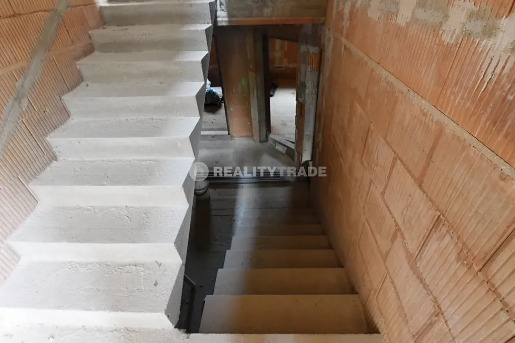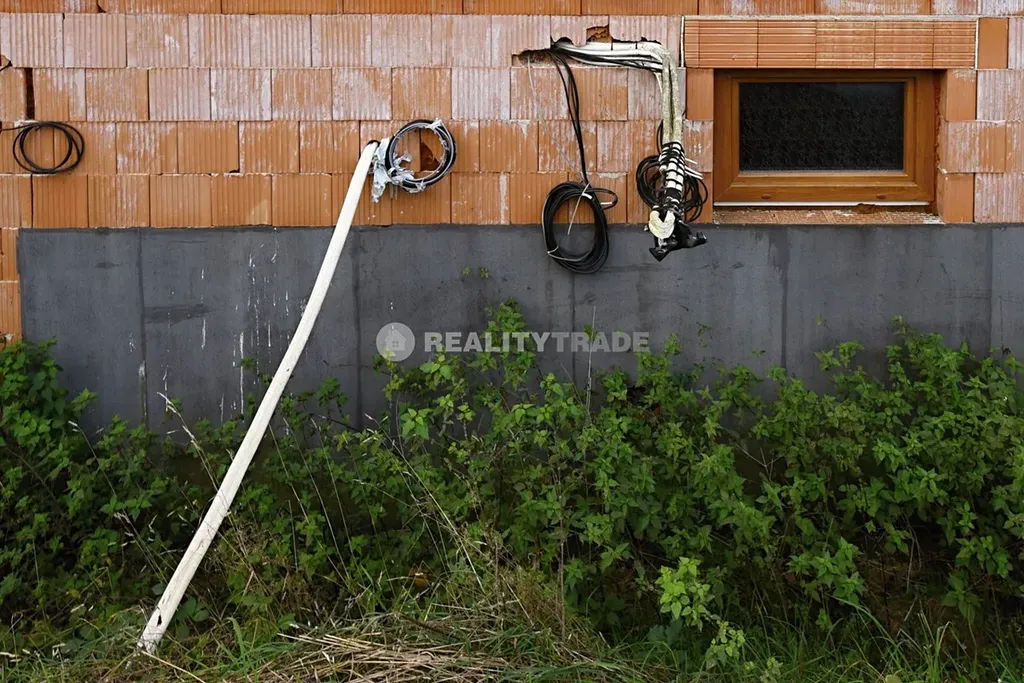 Základy jsou izolované, betonové. Objekt je cihlové konstrukce (Pichler Klimabloc Plan broušené). Stropy jsou tvořené keramickými stropními vložkami a keramicko-betonovými stropní nosníky vyztuženými svařovanou prostorovou výztuží (Miako). Střecha sedlová se záklopem, krytina pálená taška (Tondach bobrovka s glazurou), hromosvod, klempířské prvky v mědi. Plastová okna (Vekra trojsklo). Příprava na podlahové vytápění. Elektřina v mědi. Odpady v plastu, rozvod vody v plastu. Komín dvouděrový, vyvložkovaný (Rohr-Kamin). Rozvod pro centrální vysavač. Příprava na tepelné čerpadlo (vyvedené technologie). Dům je připravený na napojení na tyto sítě: elektřina 220/400 V, obecní kanalizace a vodovod. Půdorys 1PP, 1NP a 2NP je k dispozici na tomto webu v záložce "SOUBORY".