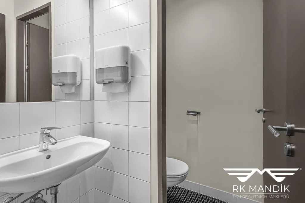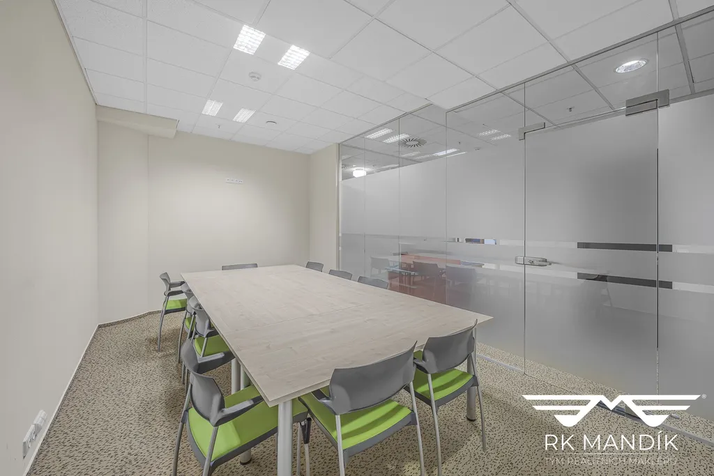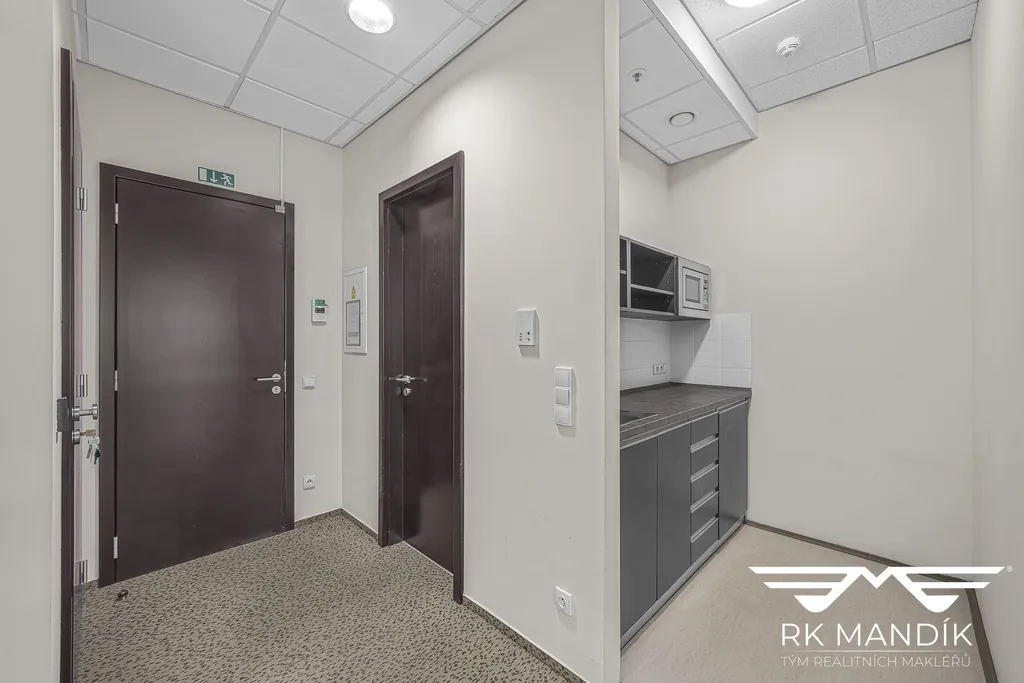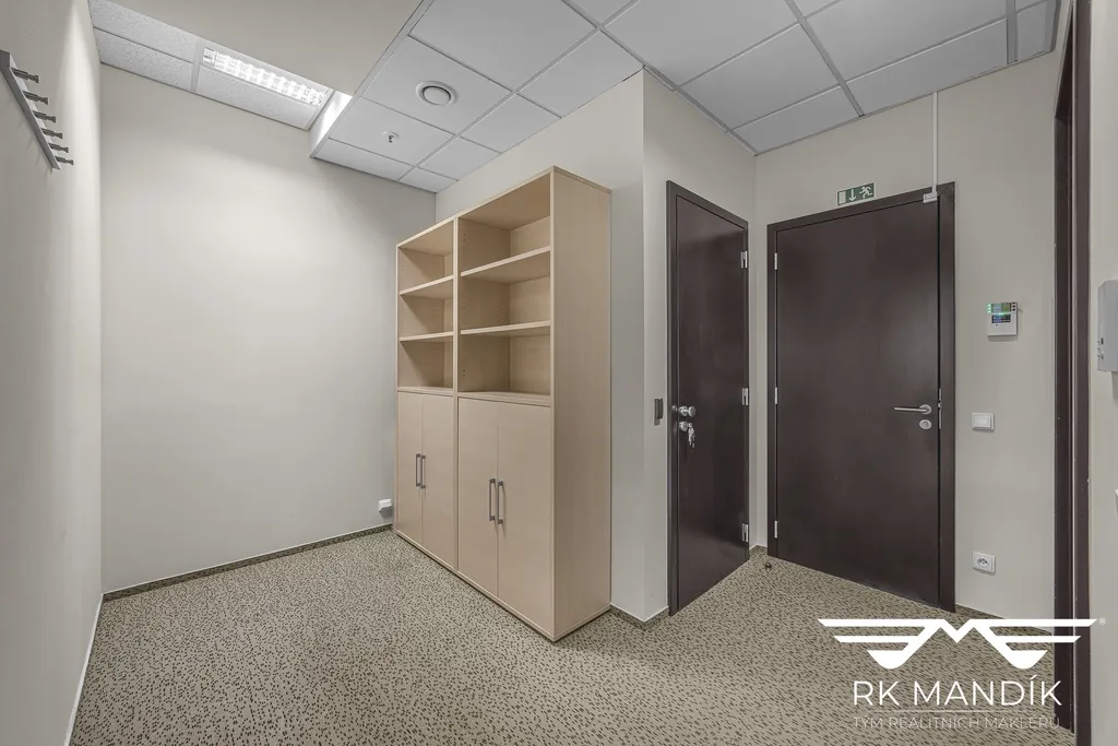 Prostory se nacházejí v 5. patře zrekonstruované administrativní budovy s výtahem a nepřetržitým provozem recepce s přístupem 24/7.