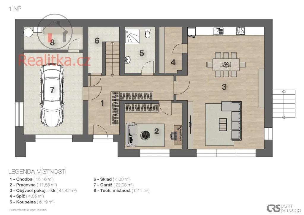 Garáž + venkovní parkovací stání – pohodlné parkování pro více vozidel