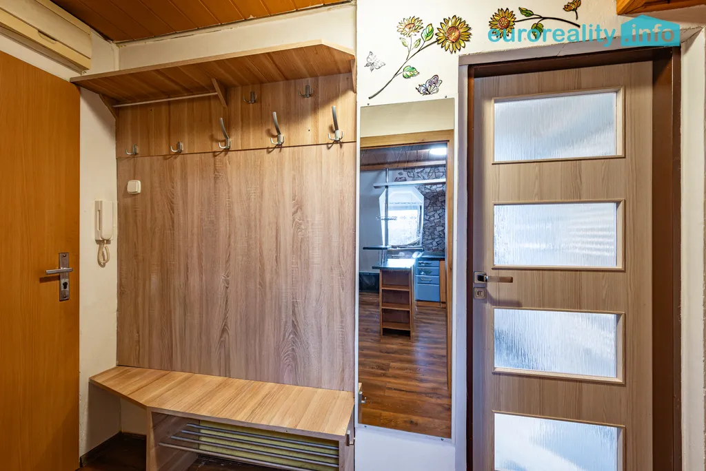 Velkou výhodou je plynová přípojka, která se nachází přímo hned za vstupními dveřmi bytu, což umožňuje budoucímu majiteli snadnou změnu způsobu vytápění či ohřevu vody.