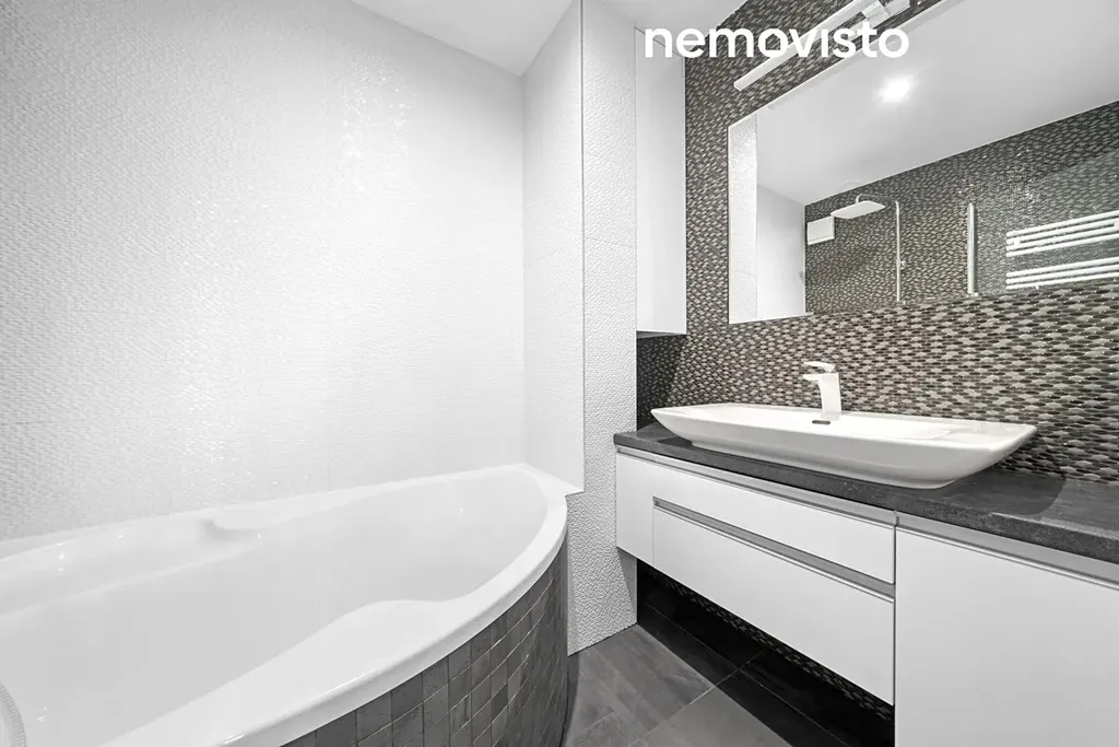 Byt má krásnou koupelnu s rohovou vanou a sprchovou zástěnou. V chodbě jsou praktické vestavěné šatní skříně a botník. Ložnice je vybavena kvalitní postelí a nechybí vestavěné šatní skříně. Obývací pokoj je vybaven sedací soupravou a špičkovou LG OLED televizí. Poslední pokoj je prázdný a můžete si ho vybavit dle svých vlastních představ. Byt byl rekonstruován ve vysokém standardu.