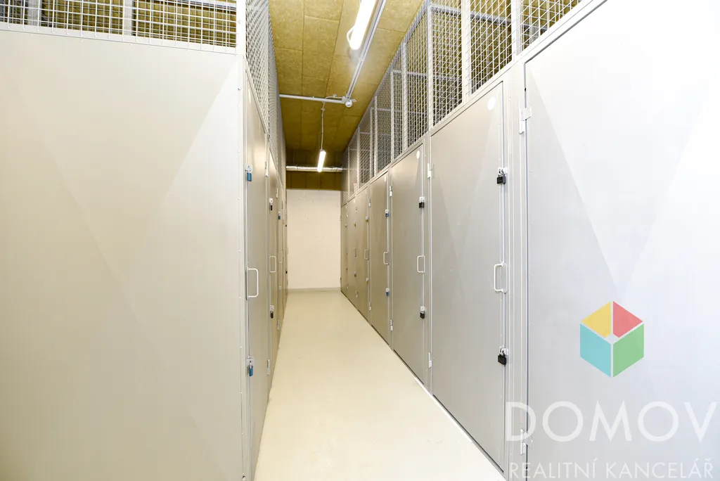 V 1.PP je k dispozici sklep (cca 5m2) s dostatkem místa např. na jízdní kolo, které si můžete umýt v myčce na kola, která je umístěna rovněž ve sklepních prostorách.
