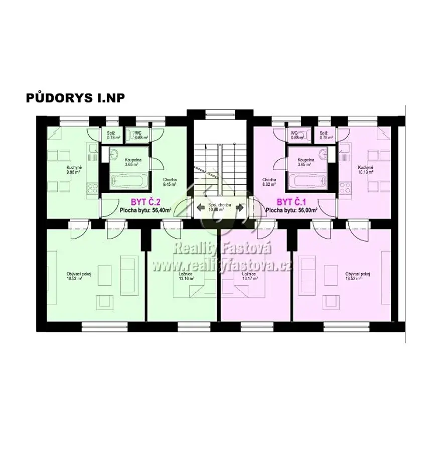 V nájemním domě je celkem 8 bytových jednotek, 6 bytů o vel. 2+1, 2 podkrovní byty o vel. 2+kk. Každý byt má komoru umístěnou v bytě.