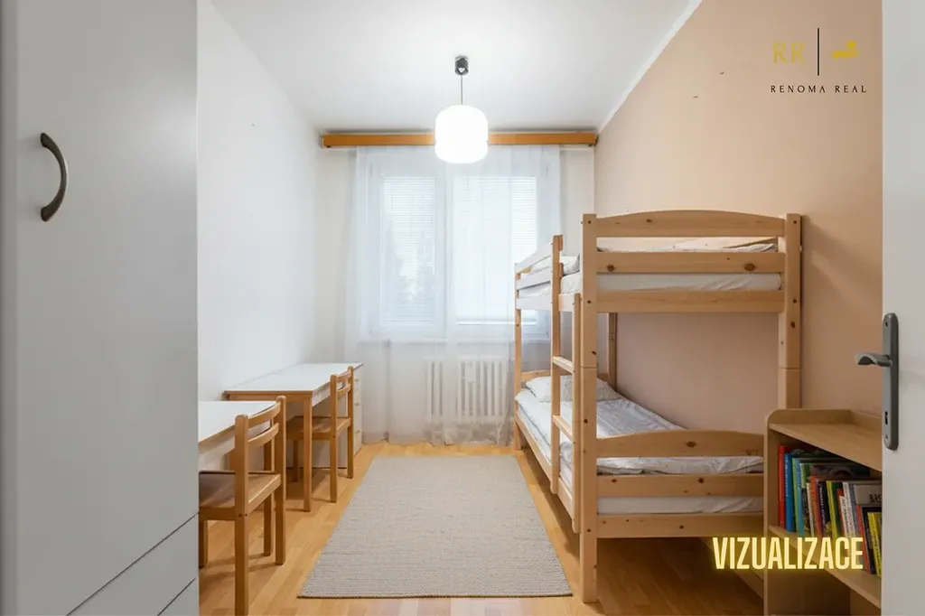 Dispozice bytu tvoří 3 neprůchozí pokoje (16, 12 a 8 m²), samostatná kuchyň, koupelna, samostatná toaleta, prostorná předsíň a praktická komora. Kromě nábytku jsou k dospozici také elektrospotřebiče - plynový sporák s troubou, myčka nádobí a pračka (po domluvě může být doplněna menší lednice).