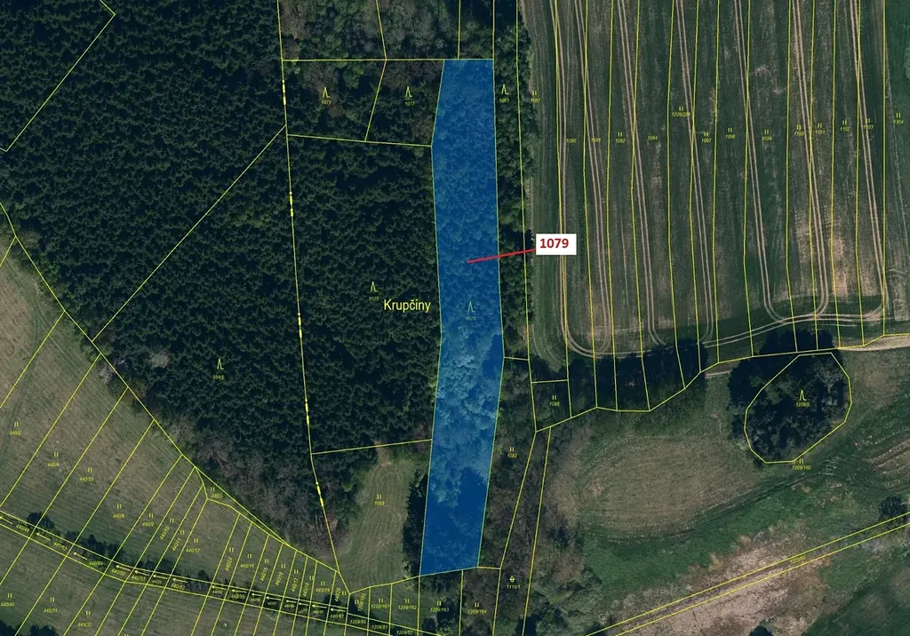 Lesní pozemek o výměře 5041 m2, parcelní číslo 1079, podíl 1/1, katastrální území Štítné, obec Žirovnice, obec s rozšířenou působností Pelhřimov, okres Pelhřimov, Kraj Vysočina. Částečně po těžbě.