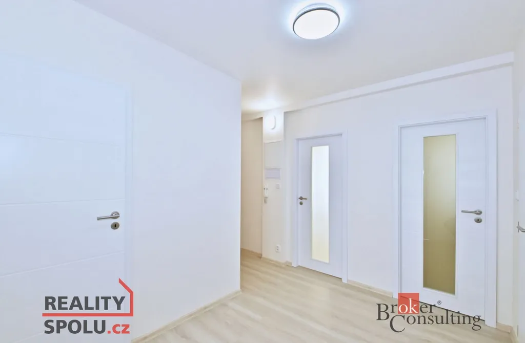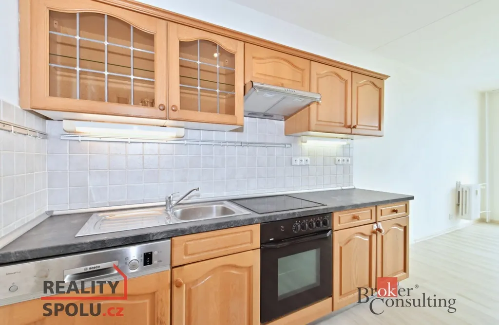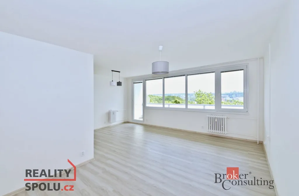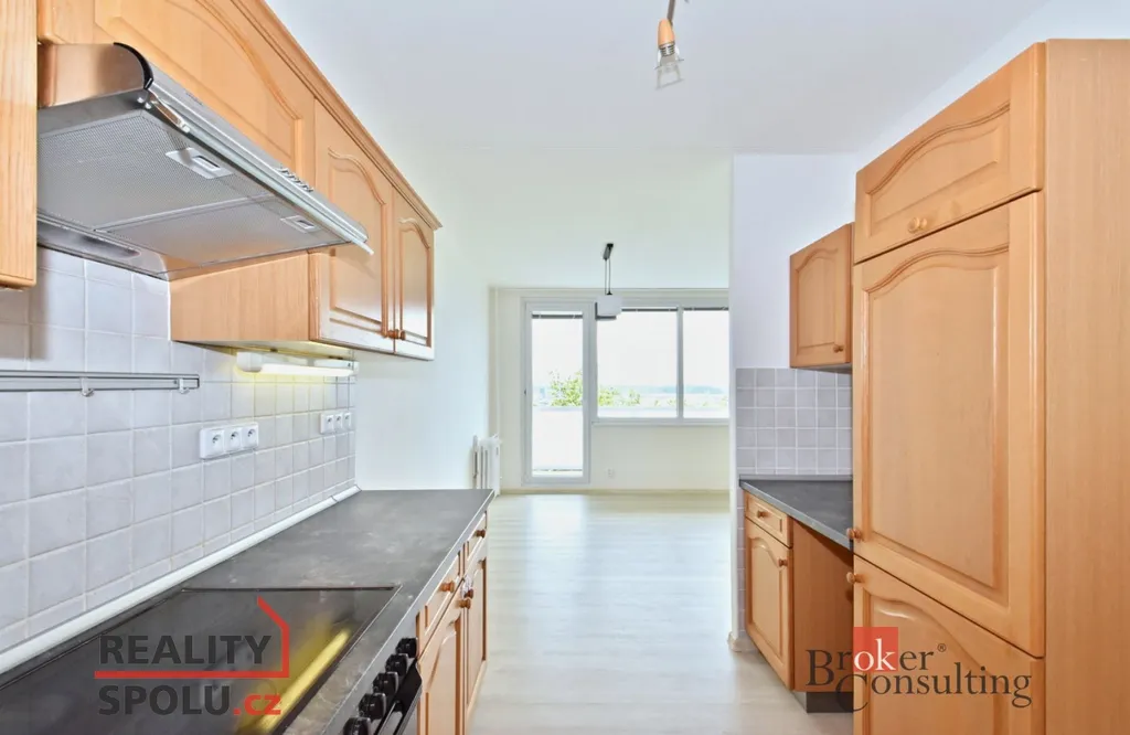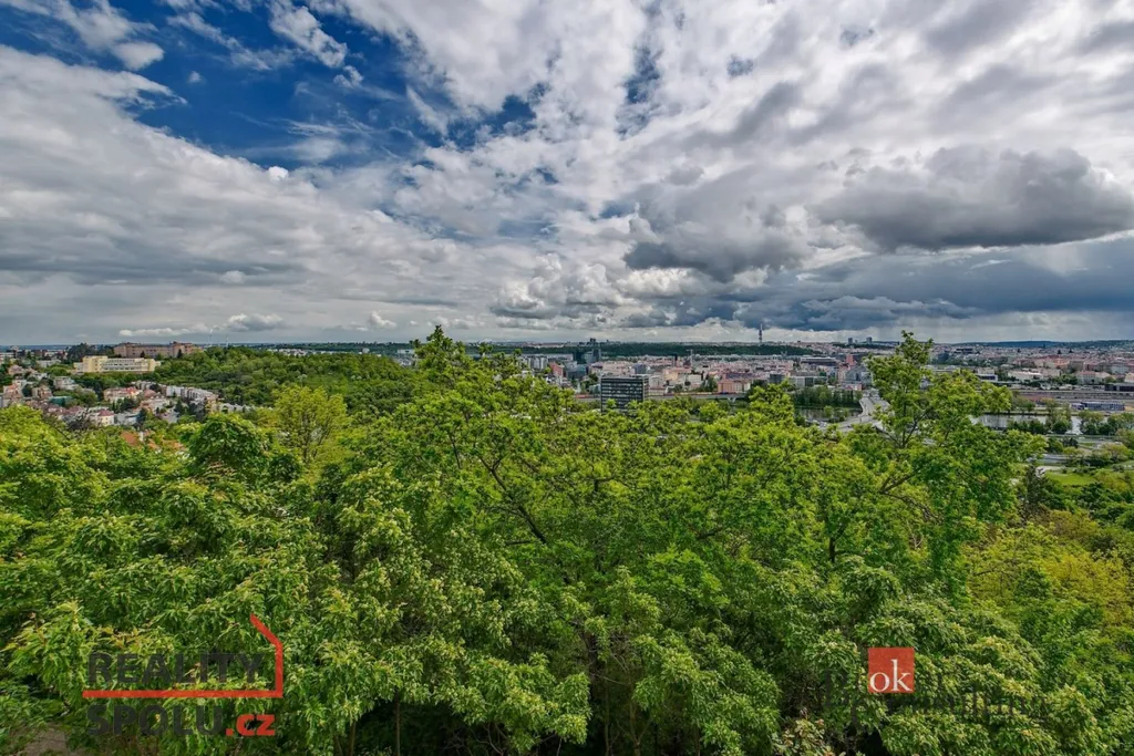 Dispozice bytu: prostorný a slunný obývací pokoj s jižní orientací a výhledem na Prahu, lodžie 6m2, kuchyňská linka s vestavěnými spotřebiči (myčka, sklokeramická el. deska, el. horkovzdušná trouba, lednice s mrazákem), předsíň s komorou, samostatná toaleta, koupelna se sprchovým koutem, umyvadlem a prostorem na pračkou, 2 x ložnice s okny orientovanými na sever. K bytu náleží sklep na patře. Okna jsou v bytě plastová, podlahy jsou vinylové a dlažby. PENB bude dodáno.