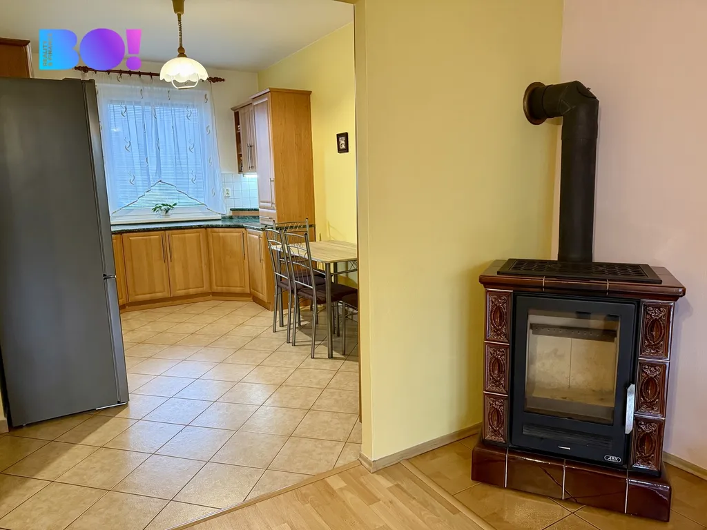 Vytápění je v domě plynovým kotlem umístěném v technické místnosti s rozvodem do radiátorů a v kuchyňském koutě i podlahové vytápění, nebo krbovými kamny, které jsou v obývacím pokoji.