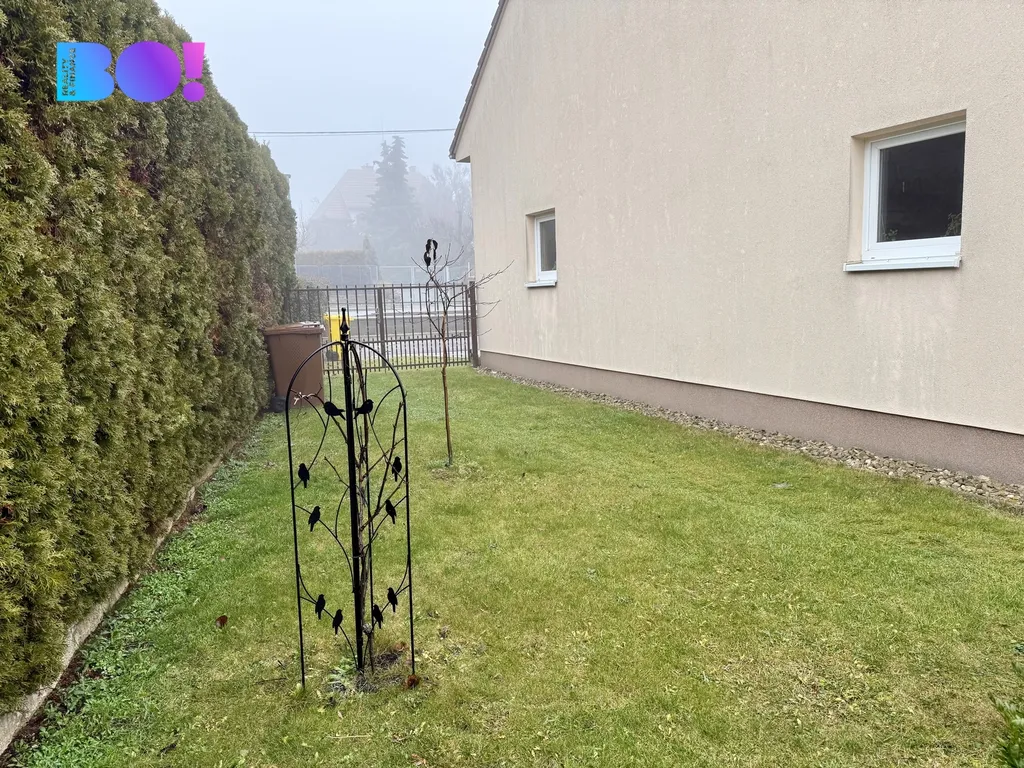 Na udržované a útulné zahradě je terasa s posezením, se vstupem i z obývacího pokoje. Na zahradu je také vjezd vedle domu přímo z ulice. Velkou výhodou jsou i možnosti parkování, které lze v garáži, na pozemku, nebo před domem.