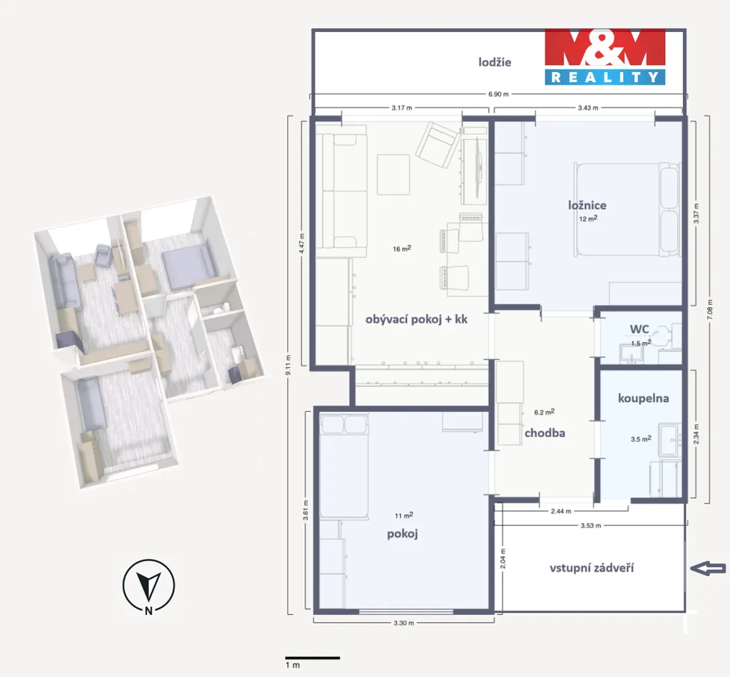 Nabízíme k pronájmu moderní byt 3+kk v novostavbě v klidné části Prahu 5 - Košíře. Byt se nachází v 5. NP zcela bezbariérového domu s výtahem. Byt má 3 neprůchozí pokoje, z toho obývací pokoj i ložnice mají vstup na velkou lodžii (10 m²). Celková plocha včetně zádveří na pavlači a lodžie činí 73 m². Lodžie je orientovaná na jih, pokoj a vstup na sever, takže v létě uděláte krásně průvan. V zimě průvan netřeba, protože k tomu všemu je byt vybaven rekuperací. Byt je vybaven kuchyňskou linkou s lednicí, v koupelně najdeme pračku a sprchový kout. WC s umyvadlem je oddělené. V ceně máte dále sklepní kóji o velikosti 3 m². Možnost parkovacího stání za 2 500 Kč/měs, není však povinné. Přímo v domě se nachází LIDL, kam můžete při ranním nákupu pro kávu a pečivo dojít suchou nohou. Hned u domu je tramvajová zastávka Klamovka se spojením na metro B Anděl (jen 5 min). Skvělá příležitost k reprezentativnímu bydlení pro pár nebo pro mladou rodinu. Volný ihned!