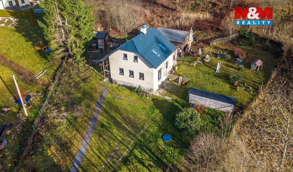Nabízíme ke koupi samostatně stojící rodinný dům v klidné části obce Lučany nad Nisou v Jizerských horách. Dům prošel rozsáhlou rekonstrukcí – zateplení, nová střecha, okna s trojskly, topná soustava, interiér a ČOV. Vlastní kopaná studna s pitnou vodou. Nízké provozní náklady zajišťuje vytápění krbovou vložkou s výměníkem s možností elektro ohřevu. Přízemí nabízí prostornou kuchyň s obývacím pokojem a jídelním koutem, halu se schodištěm, dvě technické místnosti a zadní vchod na zahradu. V patře se nacházejí tři pokoje a koupelna. K domu náleží zahradní domek se stodolou a terasou, malý sklep a rozsáhlý pozemek o celkové ploše 9.630m² včetně zahrady, luk a lesa. Na kraji pozemku protéká potok, v okolí sjezdovky, běžkařské dráhy a cyklostezky. Veškerá občanská vybavenosti v blízkosti (škola, školka, lékař, obchod). Nepromeškejte tuto jedinečnou nabídku, těšíme se na vás na prohlídkách.