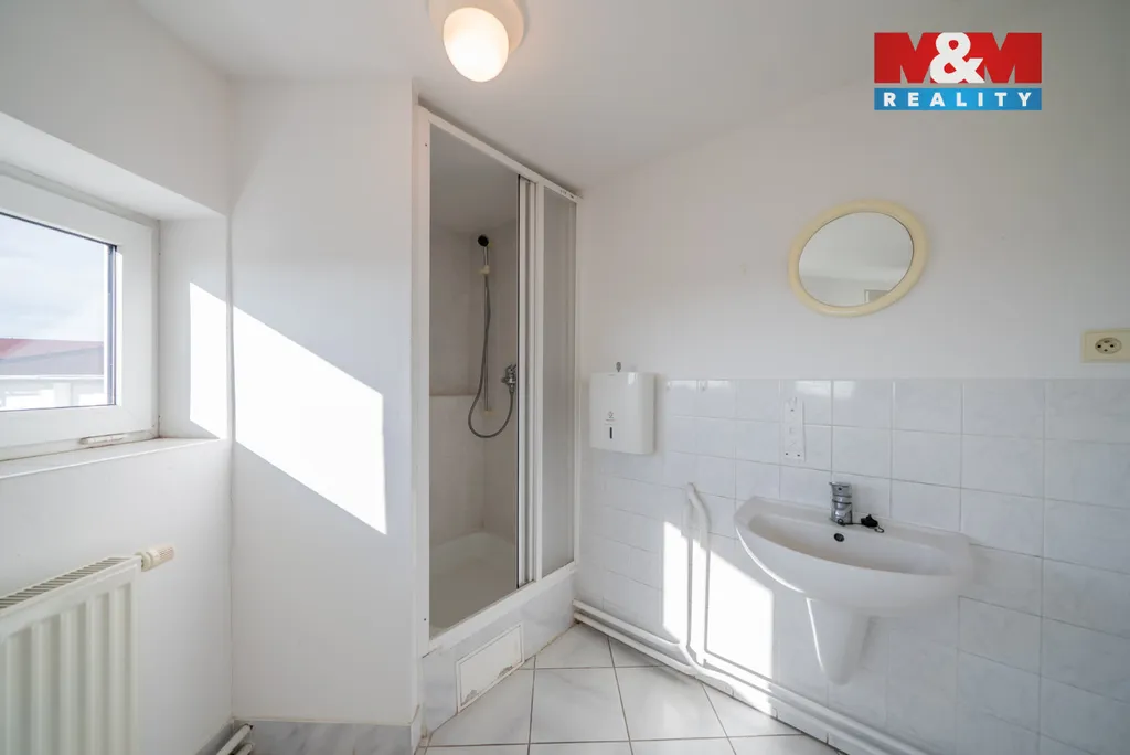 Samostatný komerční areál nabízí ideální zázemí pro firmu hledající klidné, efektivní a bezpečné prostředí s výbornou logistickou dostupností. Lokalita mimo dálnici neznamená odlehlost – naopak, přístup je plynulý a oblast nabízí dostatek kvalifikovaných pracovníků. Prostory jsou vhodné jako sídlo firmy se sklady, lehkou výrobou či kombinovaným provozem. Vytápěné a udržované prostory/sklady mají vstup z nádvoří i z administrativní části. V patře se nachází pět klimatizovaných kanceláří, kuchyňka, koupelna a toaleta o ploše cca 157 m². Vstupní část doplňuje šatna a sociální zázemí. Areál je plně samostatný a nabízí 13 uzavíratelných garáží, 4 zastřešená parkovací stání a možnost parkování možnost parkování nákladních vozidel (kamionů) na vlastním pozemku. Výhodou je také flexibilita dispozic s možností úprav či rozvoje dle potřeb nového provozu. Objekt je možné pronajmout.
