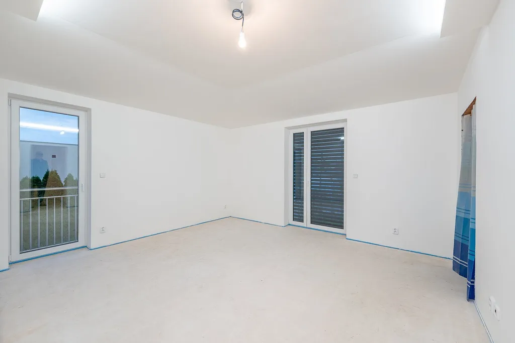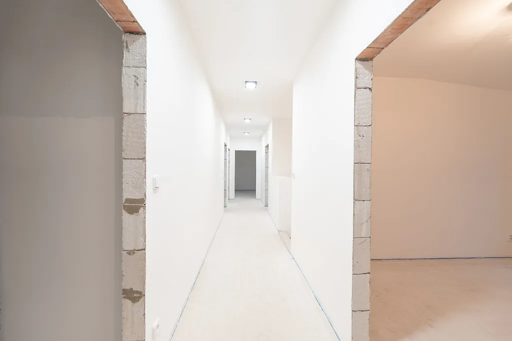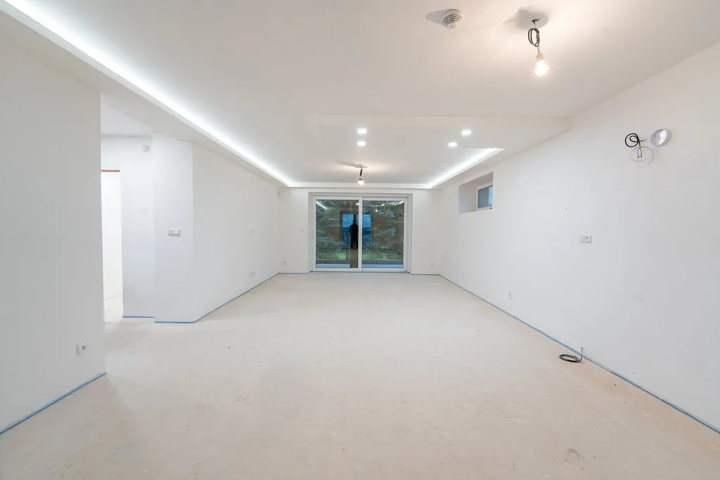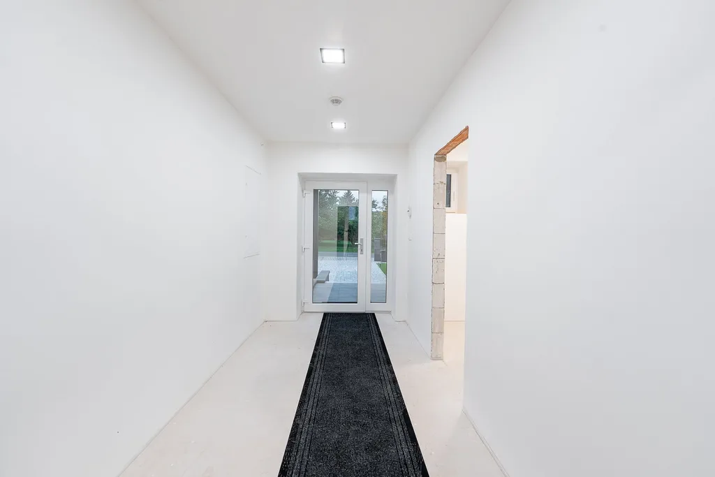 Dům je kompletně dokončený vč. oplocení a zpevněných ploch. Interiér necháváme na přání nového majitele — dokončení kuchyně, koupelen, podlahových krytin či dveří dle jeho představ. Návrh interiéru včetně cen máme připravený.