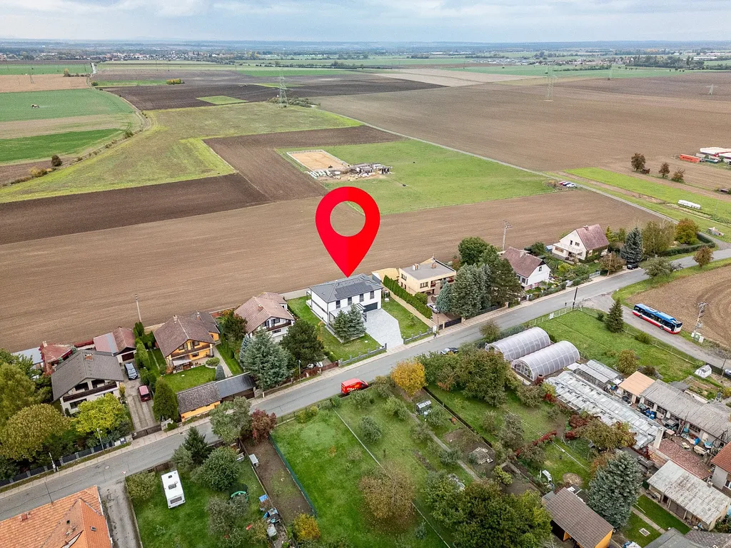 Na pozemku o velikosti 1038 m² stojí novostavba s užitnou plochou 232 m², zastavěnou plochou 165 m² a prostornou garáží 55 m² (strop 3,5 m).