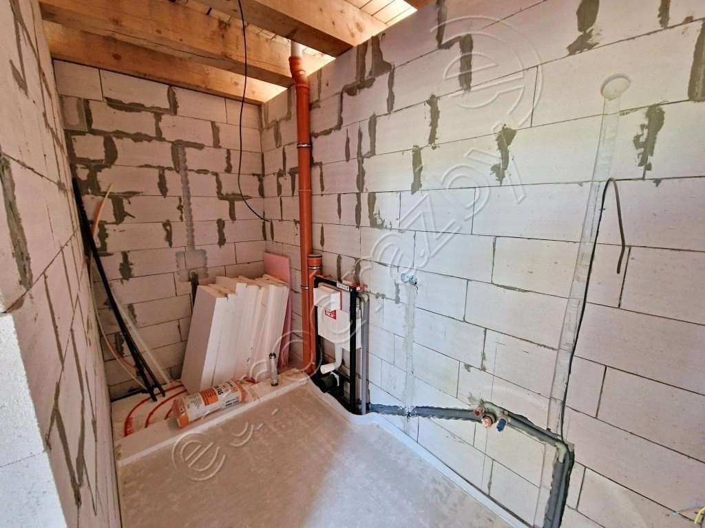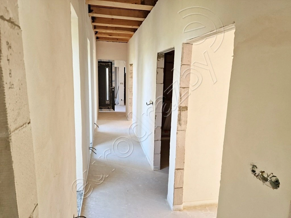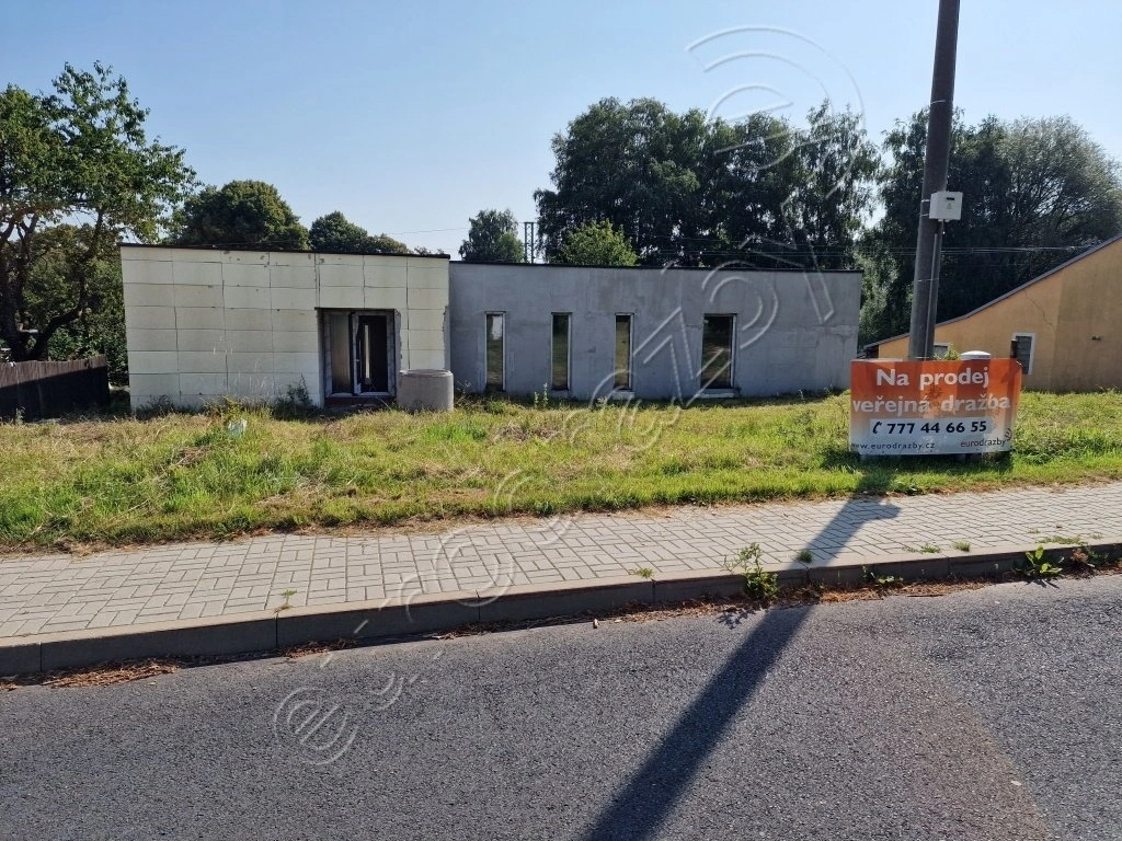 Jedná se o volně stojící, rozestavěný rodinný dům s 1.NP. Rodinný dům je nepodsklepený, zděný, přízemní, typ bungalov, zastřešený rovnou střechou, půdorysného tvaru písmene „T” o jedné bytové jednotce vel.5+kk . Jedná se o typizovaný dům od firmy GServis, Orlando 5. Za vchodovými dveřmi vlevo měla být technická místnost, podle sdělení majitele změna na pracovnu, rovně je vchod do obývacího pokoje s kuchyní. Oproti projektu je provedena změna – není vyzděna příčka u bývalé pracovny. O tento prostor je zvětšený obývací pokoj. Za vchodovými dveřmi vlevo je podlouhlá chodba, ze které je vstup do tří pokojů a koupelny s WC. Další koupelna s WC je přístupná ze zadního pokoje. Jsou dokončené základy, svislé konstrukce, zastřešení, osazena okna, balkónové a vchodové dveře, vnitřní omítky, rozvody voda, kanalizace, z větší části elektroinstalace, podlahové rozvody vytápění, z vnější části bylo započaté zateplení, osazené nádržky splachovacích záchodů tzv. geberity. Podle sdělení jsou dokončené přípojky na veřejný vodovod, splaškovou kanalizaci a elektro. PENB - „B”.
