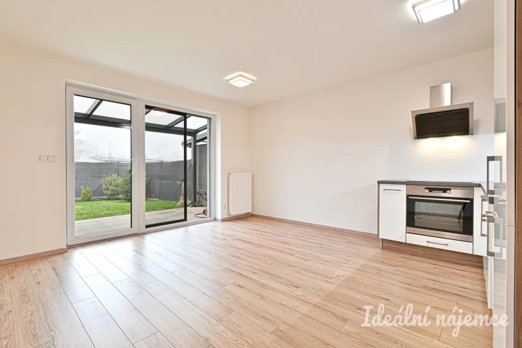 Jedná se o nezařízený byt. V kuchyni naleznete kuchyňskou linku s varnou deskou, troubou, myčkou nádobí a lednicí. V přední části se nachází vstup na terasu a zahradu.