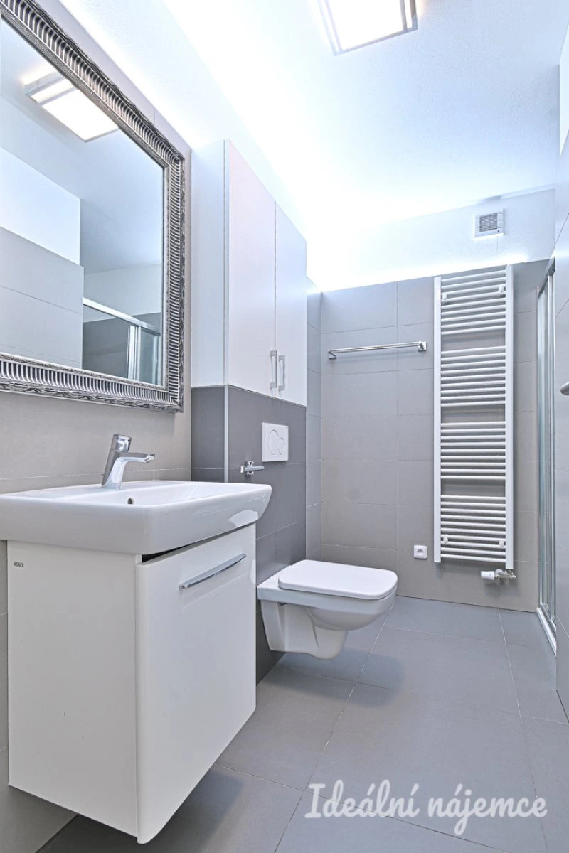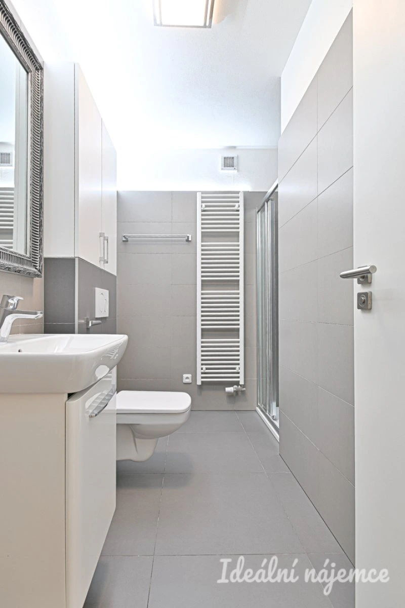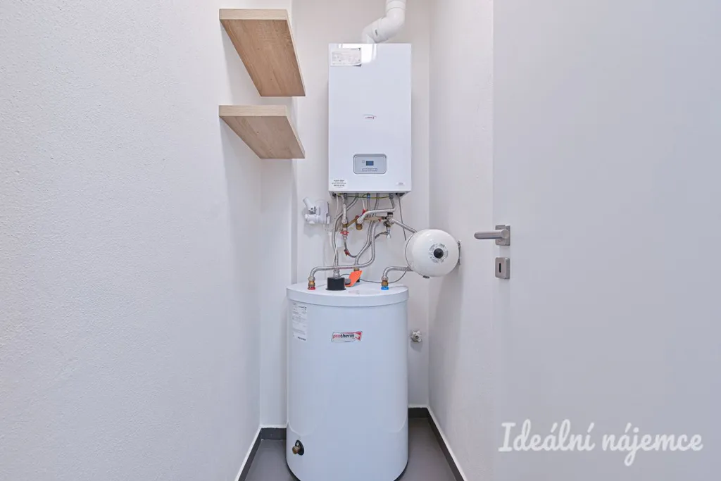 Dále se zde nachází samostatný pokoj. Pokoj je nevybavený. V koupelně se nachází sprchový kout, umyvadlo, zrcadlo a WC. V bytě jsou vinylové podlahy a dlažba. Vytápění zajišťuje vytápění s radiátory.