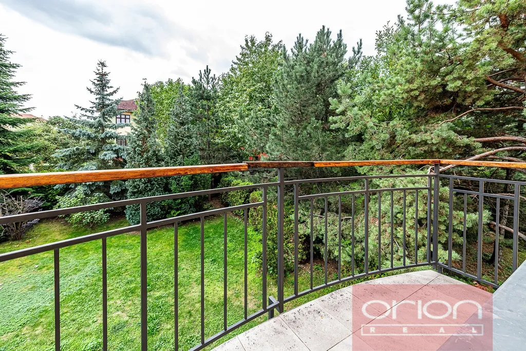 Nabízíme k pronájmu prostornou vilu se zahradou v klidné rezidenční čtvrti v Praze 6 - Břevnov. Celková plocha domu činí 316 m² a nabízí v přízemí vstupní halu, plně vybavenou kuchyň, obývací pokoj s jídelnou a se vstupem na terasu a zahradu, koupelnu se sprchou a samostatnou toaletu. V 1. patře jsou 3 ložnice, (z nichž 2 mají vstup na balkon), koupelna s rohovou vanou a sprchou a samostatná toaleta. Podkroví nabízí 2 ložnice a koupelnu s vanou a toaletou. V suterénu domu se nachází skladovací prostory, koupelna se sprchou, umyvadlem a WC, technická místnost a garáž pro dvě auta. K vybavení domu patří skříně, pračka, internet, satelit a alarm. Na podlahách jsou dřevěné parkety a dlažba. Ve spodním patře jsou venkovní elektrické rolety. K dispozici je udržovaná zahrada o velikosti 403 m². Dům je situován v klidné lokalitě v pěší dostupnosti od parku Ladronka, obory Hvězda nebo Břevnovského kláštera. Krásná lokalita se spoustou zeleně v okolí, 5 minut chůze od tramvajové zastávky s rychlým spojením na metro Hradčanská. V blízkém okolí veškerá občanská vybavenost: obchody, školy a školky, mezinárodní školy, sportoviště, restaurace a kavárny. Autem blízké napojení na městský okruh a dálniční síť.