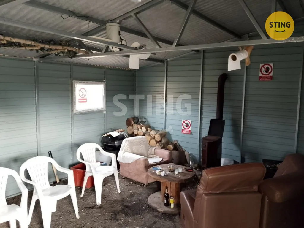 Součástí pozemku je dřevěný zahradní domek,ve kterém se dá zatopit za chladných večerů .