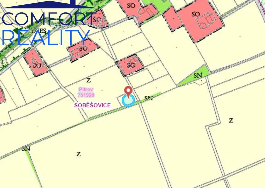 Ve výhradním zastoupení majitele nabízíme investiční příležitost v podobě koupě pozemku v obci Soběšovice (okr.FM), místní části Pítrov. Pozemek je obdélníkového tvaru o přibližných rozměrech 23 x 37 m a celkové výměře 916 m2. Historicky na pozemku stála stavba, nyní je pozemek územním plánem určen jako plocha zemědělská. Podáním žádosti o změnu ÚP a úspěšné úpravě lze koupi uchopit jako dlouhodobou investici. V okolí jsou takto podobně (ostrůvkově) pozemky vyčleněny.