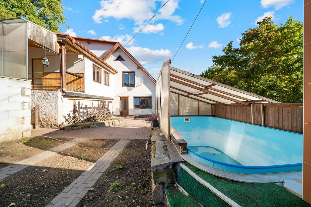Bonus: K dispozici je krytý bazén s posuvným zastřešením. Je starší a vyžaduje kontrolu a údržbu, ale představuje úžasný potenciál pro letní dny.