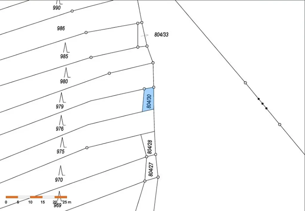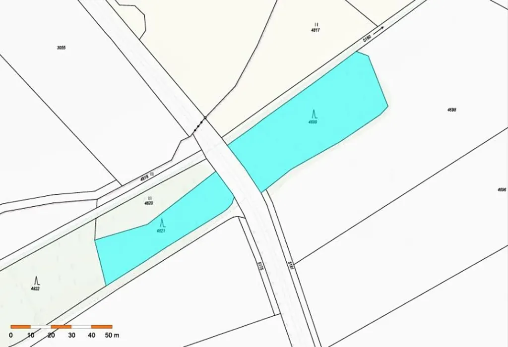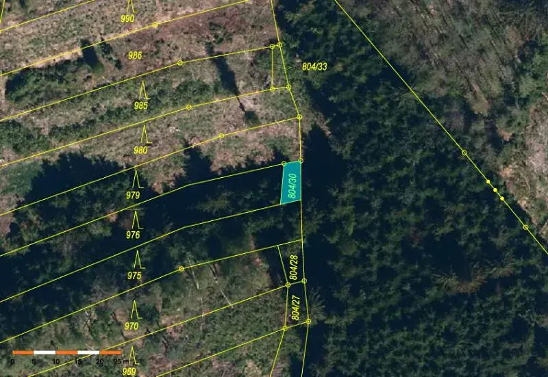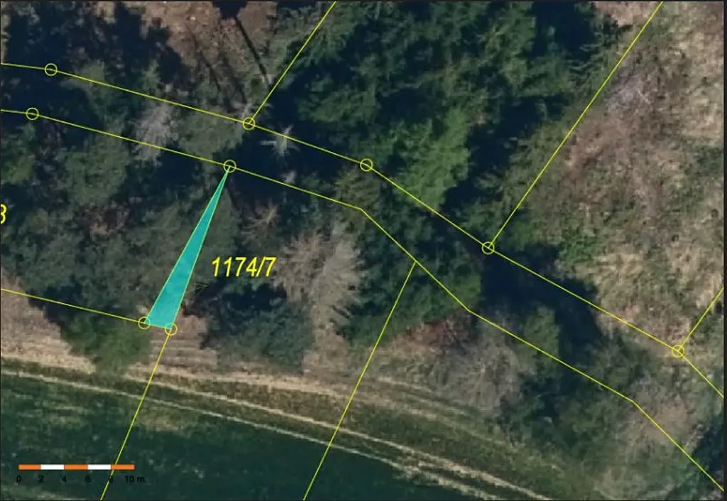 Pozemky p.č. 4699 a 4821 se nachází při silnici, mají menší výměru a nepravidelný tvar především se smrkovým porostem. Pozemky p.č. 2674 a 4882 na sebe navazují, mají dlouhý protáhlý tvar se smrkovým porostem a částečně olší. Pozemky p.č. 804/30 a 1174/7 jsou velmi malé výměry bez trvalých porostů.