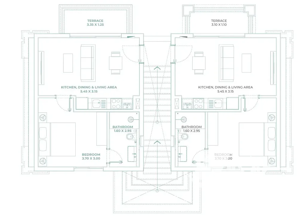 Byt o dispozici 2+kk s podlahovou plochou 50 m² se nachází v prvním patře a doplňuje jej terasa, která rozšiřuje obytný prostor a zve k ranní kávě i k večernímu odpočinku. Vzdušné uspořádání interiéru působí svěže a příjemně, zatímco okolní zeleň a mořský vzduch dodávají každému dni pohodový rytmus. Fotografie jsou ilustrační, avšak přesně vystihují atmosféru celého projektu.