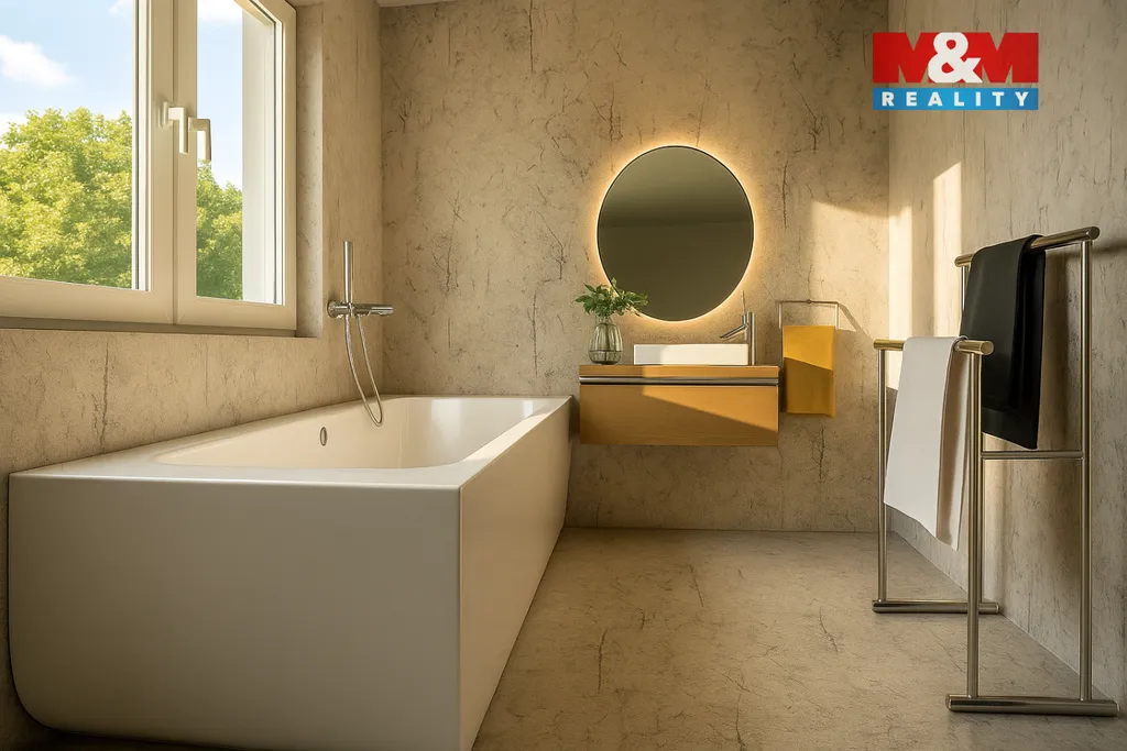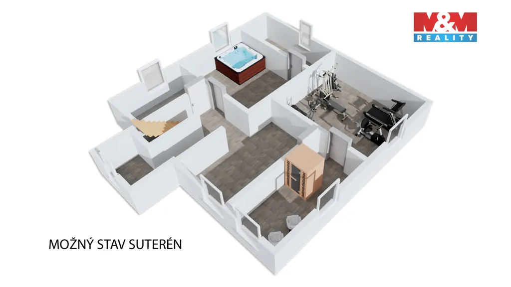 Suterén domu dává prostor k vybudování rodinného wellness. Okna a dveře plastová, žaluzie a síťky proti hmyzu. Fasáda domu břizolitová.