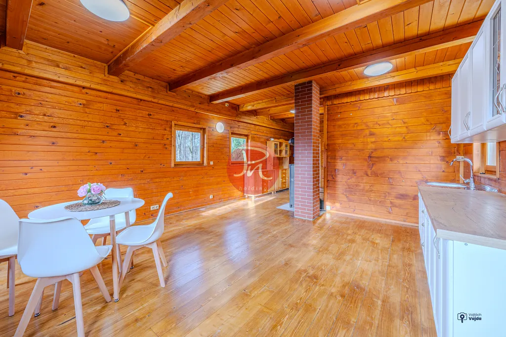 Součástí objektu je obytný prostor s kuchyňským koutem, podkrovní ložnice a další zázemí odpovídající rekreačnímu i celoročnímu využití. Vše působí funkčně, čistě a přirozeně. Nejde o nemovitost na efekt, ale o místo, kde se dobře tráví čas a kam se člověk rád vrací.
