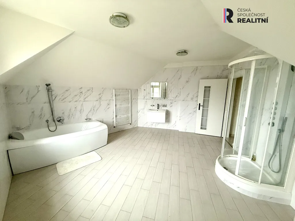 V prvním patře se nachází obývací pokoj s balkonem, ložnice s vlastní koupelnou a WC, samostatné WC, prostorná koupelna se sprchovým koutem i vanou, chodba a další ložnice. Druhé patro, tedy podkroví, nabízí velkorysý otevřený ateliér se střešními okny, samostatné WC a komoru, přičemž prostor je ideální jako pracovna, ateliér či relaxační zóna.