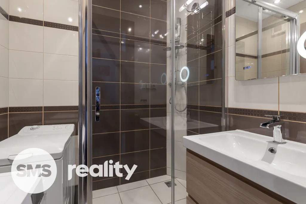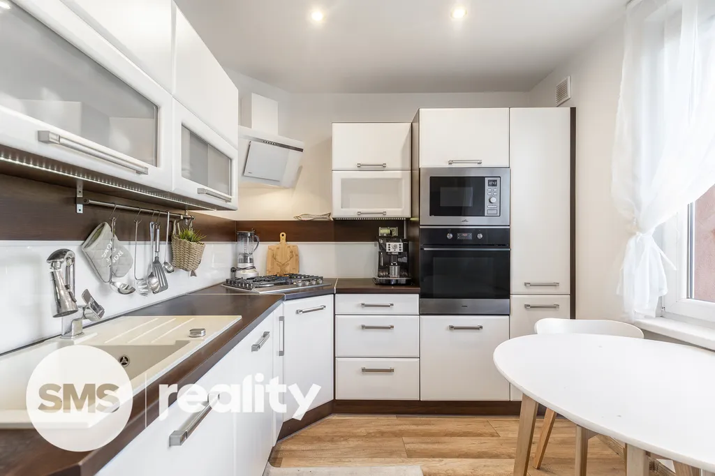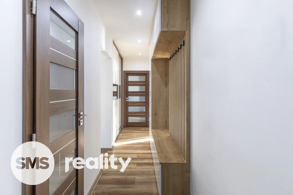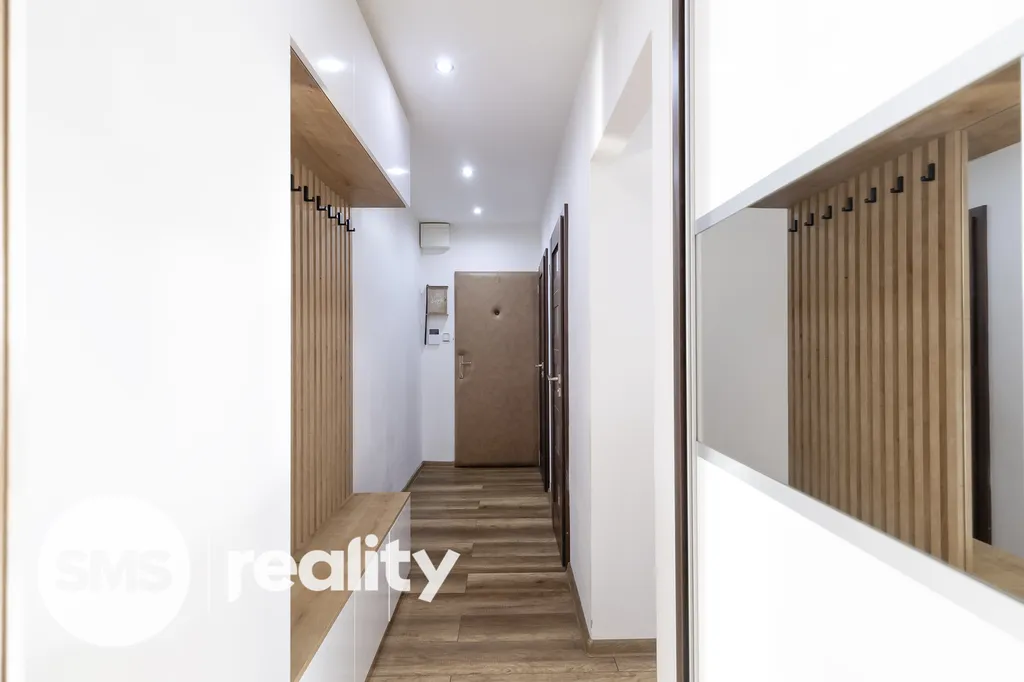 Rekonstrukce zahrnovala elektroinstalaci, zděné jádro, novou kuchyň včetně spotřebičů, LED osvětlení a další prvky – byt je připravený k okamžitému užívání bez dalších investic. Koupelna a WC jsou zvlášť, což je praktické pro každodenní provoz. Součástí je také sklepní kóje.