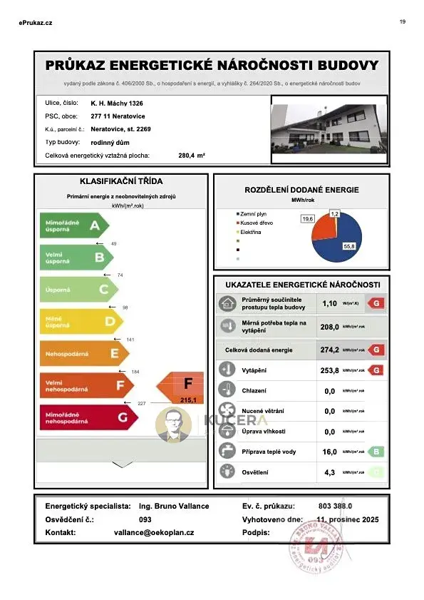 | Ukazatel energetické náročnosti | 215.1 kWh/m2 za rok |