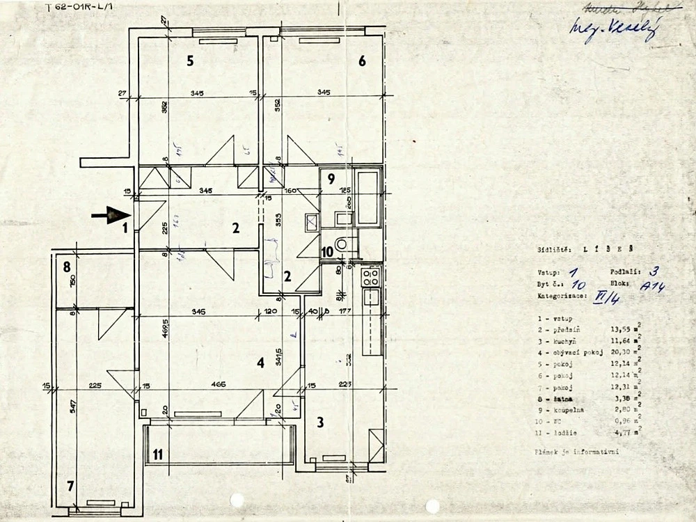 Celková plocha bytu činí 94 m² + 5 m² lodžie, nachází se ve 3. patře/4. panelového domu bez výtahu v krásném zeleném prostředí.