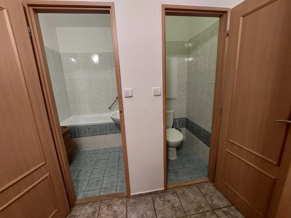 Dispozice: kuchyně 9 m², obývací pokoj 21 m² se vstupem na prostornou lodžii 5 m², tři pokoje, každý s rozlohou 13 m², dva mají samostatné vstupy, velká předsíň, koupelna s vanou, toaletní skříňka, zrcadlo, samostatné WC, k dispozici sklep.
