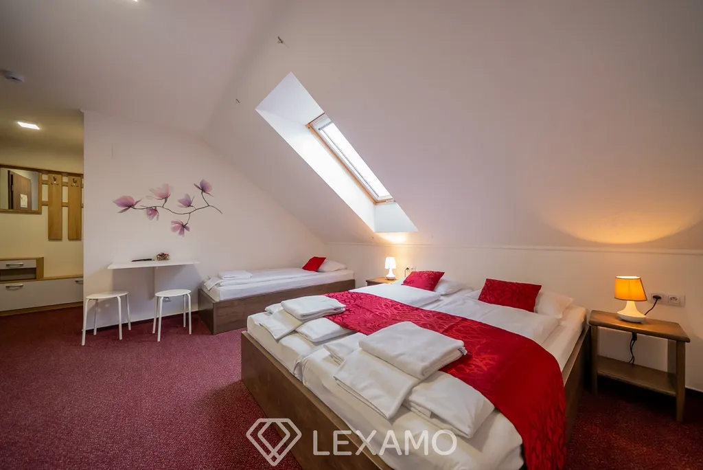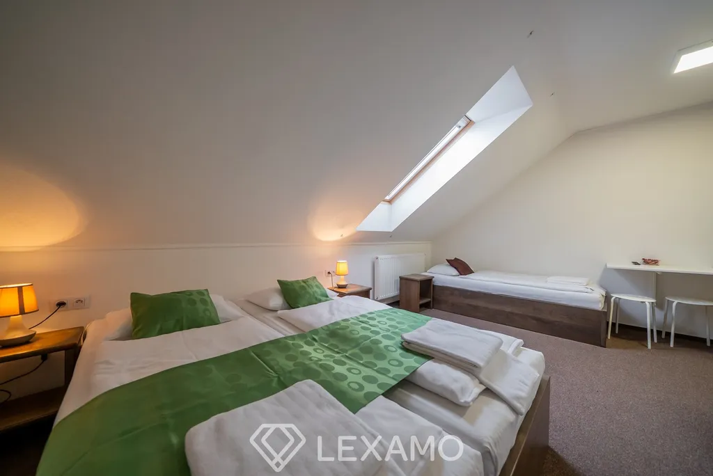 Disponuje 2 apartmány a 3 pokoji. Prostory jsou prakticky řešené, udržované a poskytují hostům komfortní zázemí pro krátkodobé i delší pobyty. Součástí objektu jsou také společné prostory a kuchyňské zázemí, které umožňují plynulý provoz penzionu.Nemovitost je napojena na elektřinu, veřejný vodovod a veřejnou kanalizaci. Vytápění objektu je řešeno elektrickým kotlem s rozvodem do radiátorů. V prostoru restaurace se navíc nachází krb, který dotváří příjemnou atmosféru a slouží jako doplňkový zdroj tepla.