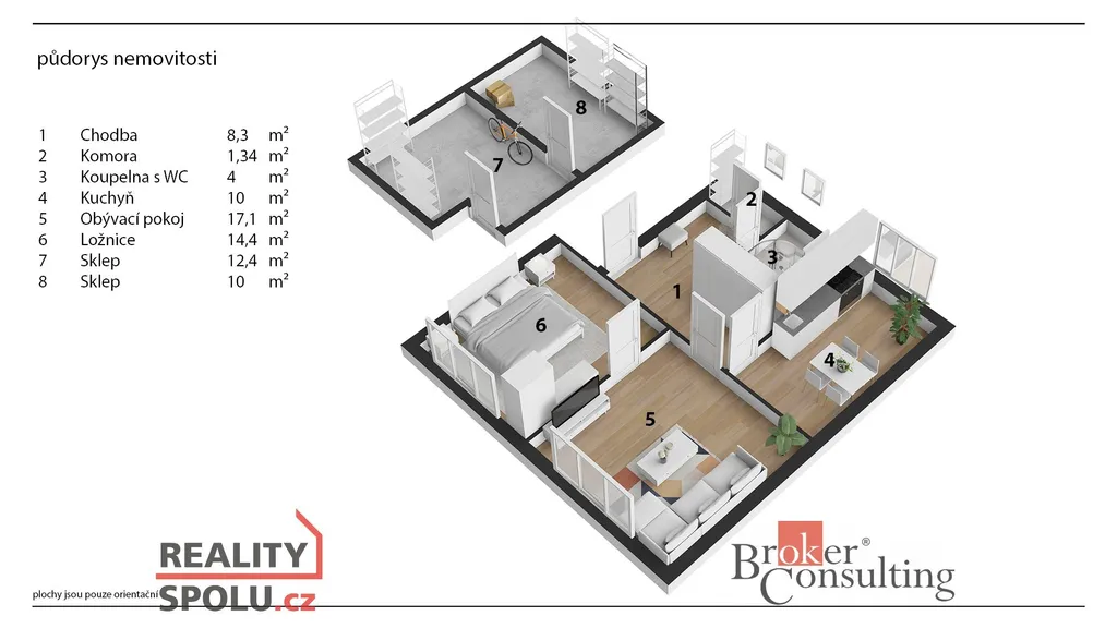 Byt disponuje obývacím pokojem, ložnicí, samostatnou kuchyní a koupelnou s WC. Je v dobrém technickém stavu, připravený k okamžitému užívání nebo k modernizaci dle vlastních představ. Velkým benefitem je zahrada - ideální pro relaxaci, pěstování či posezení, a také prostorný sklep o velikosti cca 20 m².
