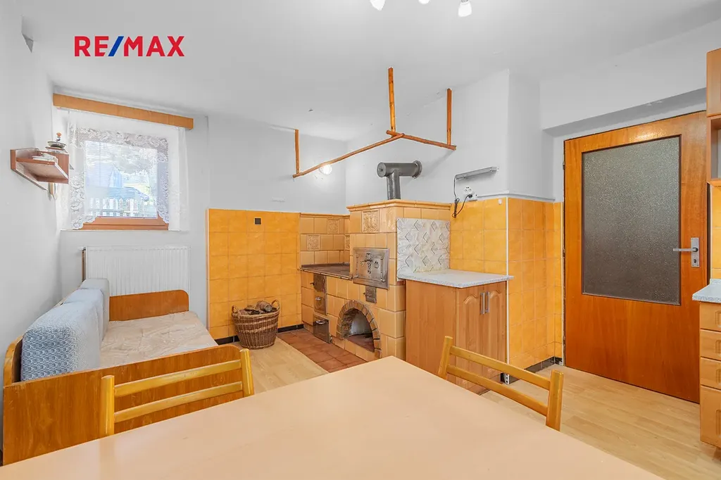 Předmětem prodeje je rodinný dům s celkovou užitnou plochou 128 m2 stojící na udržovaném pozemku o výměře 820 m2. Srdcem obytné části domu je kuchyně s kachlovými kamny, které dodávají celému prostoru tu správnou atmosféru, teplo a pohodu útulného domova. Dále zde najdeme dva neprůchozí pokoje, koupenu se sprchovým koutem a toaletu. Užitná plocha včetně předsíně a zádveří je 74 m2. Ve druhé části domu s plochou 54 m2 naleznete technické zázemí, kotelnu, garáž, dílnu a sklad. Pokud by Vám to nestačilo, lze využít potenciálu podkroví, k rozšíření obytné plochy domu o půdní vestavbu.