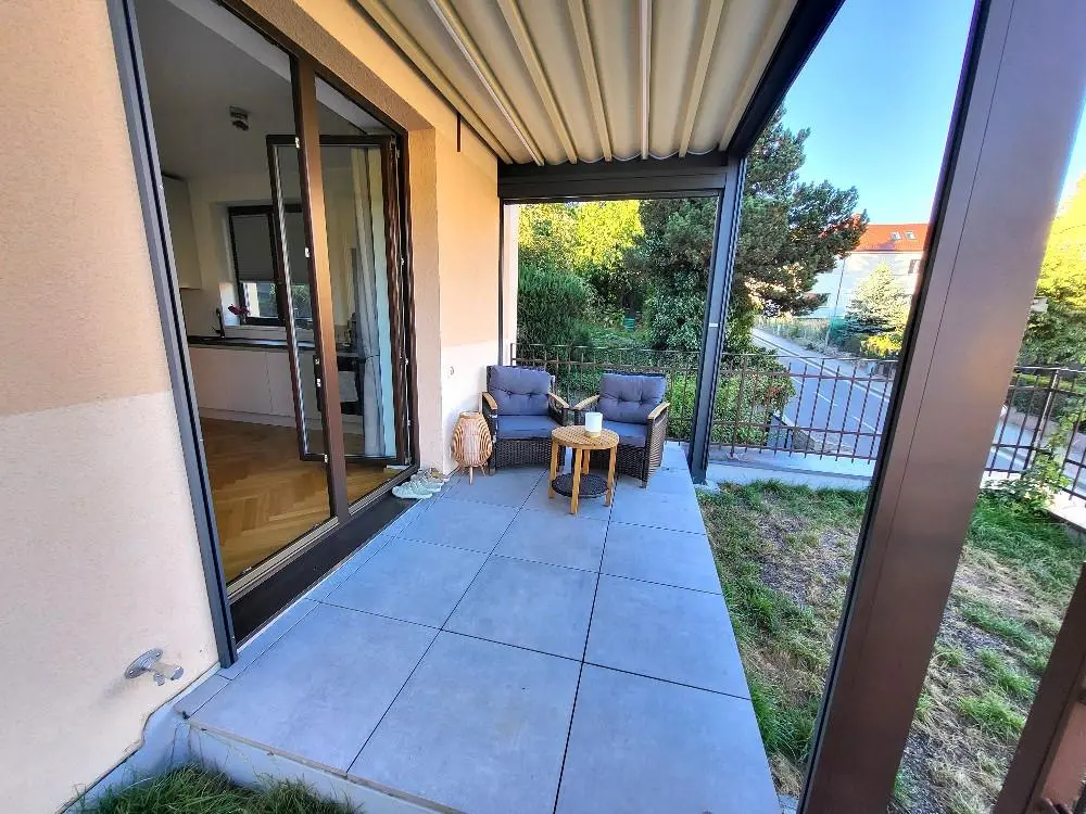 Výjimečné místo k životu i rekreaci v blízkosti historického centra Tábora! Atraktivní byt s rozsáhlou terasou, garážovým stáním a výhledem na vilovou čtvrť v Táboře, které je součástí. V nově postaveném domě o celkovém počtu 8 bytových jednotek v Bechyňské ulici v Táboře, nedaleko Kotnova a historického centra města Vám nabízíme ve druhém nadzemním podlaží ke koupi byt o velikosti 38 m2, v počtu místností 1 + kuchyňský kout, vstupní chodba, sociální zařízení. Na byt navazuje prostorná dlážděná terasa s další zatravněnou plochou o výměře 20 m2. Terasa je krytá pergolou se zařízením na ovládání zastínění ze všech stran i stropu, která vytváří možnost dalšího využitelného prostoru k posezení i odpočinku. Unikátní terasa a travnatá plocha je jako stvořená pro útulné venkovní posezení, relaxaci, slunění, cvičení nebo malé zahradničení. Kuchyně je vybavená kuchyňskou linkou včetně spotřebičů (lednice, myčka, kávovar Philips, elektrická trouba, varná deska). V prostorné koupelně je sprchový kout, umyvadlo, WC, pračka se sušičkou ( kombinace). V obývací části a vstupní chodbě jsou prostorné vestavěné skříně k uložení osobních věcí. Podlahovou krytinu tvoří parkety. Byt se prodává včetně zařízení tak, jak je zobrazeno na fotografiích. K bytu dále patří sklepní prostor v prvním podlaží. V domě je výtah, plynová kotelna Buderus s akumulační nádrží na teplou vodu, bytová jednotka je napojena na vodovod a elektřinu. Pohodlné parkování na vlastním garážovém stání v 1. nadzemním podlaží, které je dostupné výtahem přímo z patra bytu, je za cenu 900.000,- Kč a je podmínkou koupě bytu. Na prostorném parkovacím místě o velikosti 1 + 1/2 klasického parkovacího stání zaparkuje nejen osobní automobil, ale dále i například dva motocykly. Vjezd je zabezpečen automatickými dálkově ovládanými vraty zn. Hormann. Nízké náklady na bydlení včetně energií činí 2.921 Kč + elektřina ( v současné době je záloha nastavena na 740 Kč/měs.). Veškerá občanská vybavenost se nachází v bezprostřední blízkosti domu v centru Tábora. Obchody, restaurace, historická část města, zastávka MHD, na druhé straně příroda, řeka Lužnice, lesopark Pintovka, Tismenické údolí s příjemnou procházkou do Klokot, vše v pěší dostupnosti během několika minut.