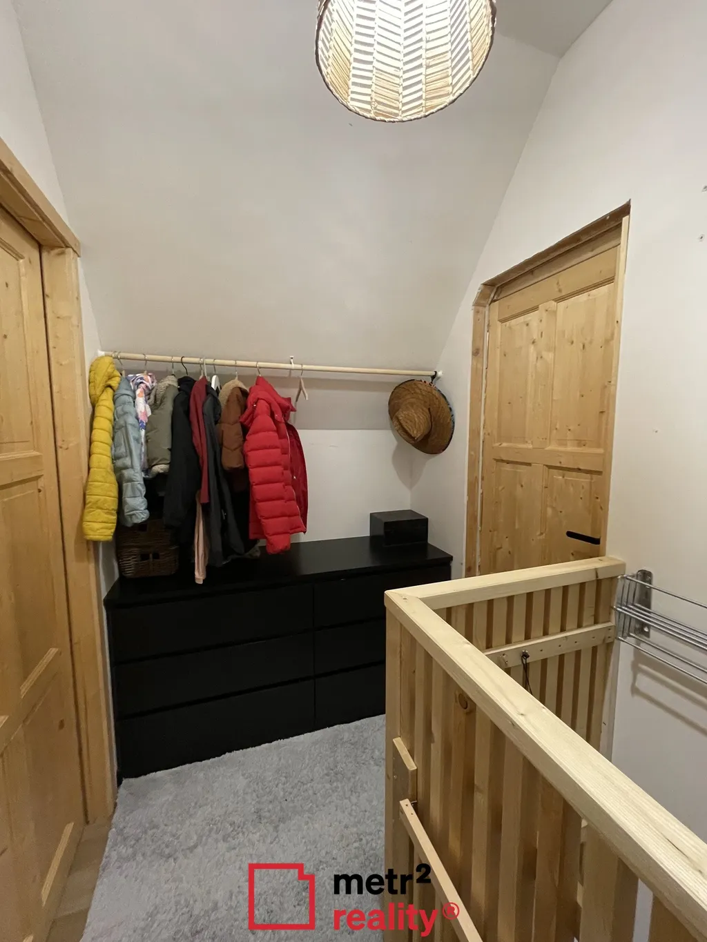 Dům o dispozici 3+1 je promyšleně řešen tak, aby každý člen rodiny našel svůj koutek. Dům je rozšířen přístavbou kontejneru. Moderní kuchyň v černém dekoru působí elegantně a nabízí plné vybavení, kde vaření bude radostí. Dětský pokoj je vybaven vestavěnou dvoupatrovou postelí, která šetří prostor a vnese do každodenního života dotek hravosti. Útulná ložnice přináší klidné zázemí pro chvíle odpočinku. Obývací pokoj s jídelní částí propojuje rodinu v jeden harmonický celek.
