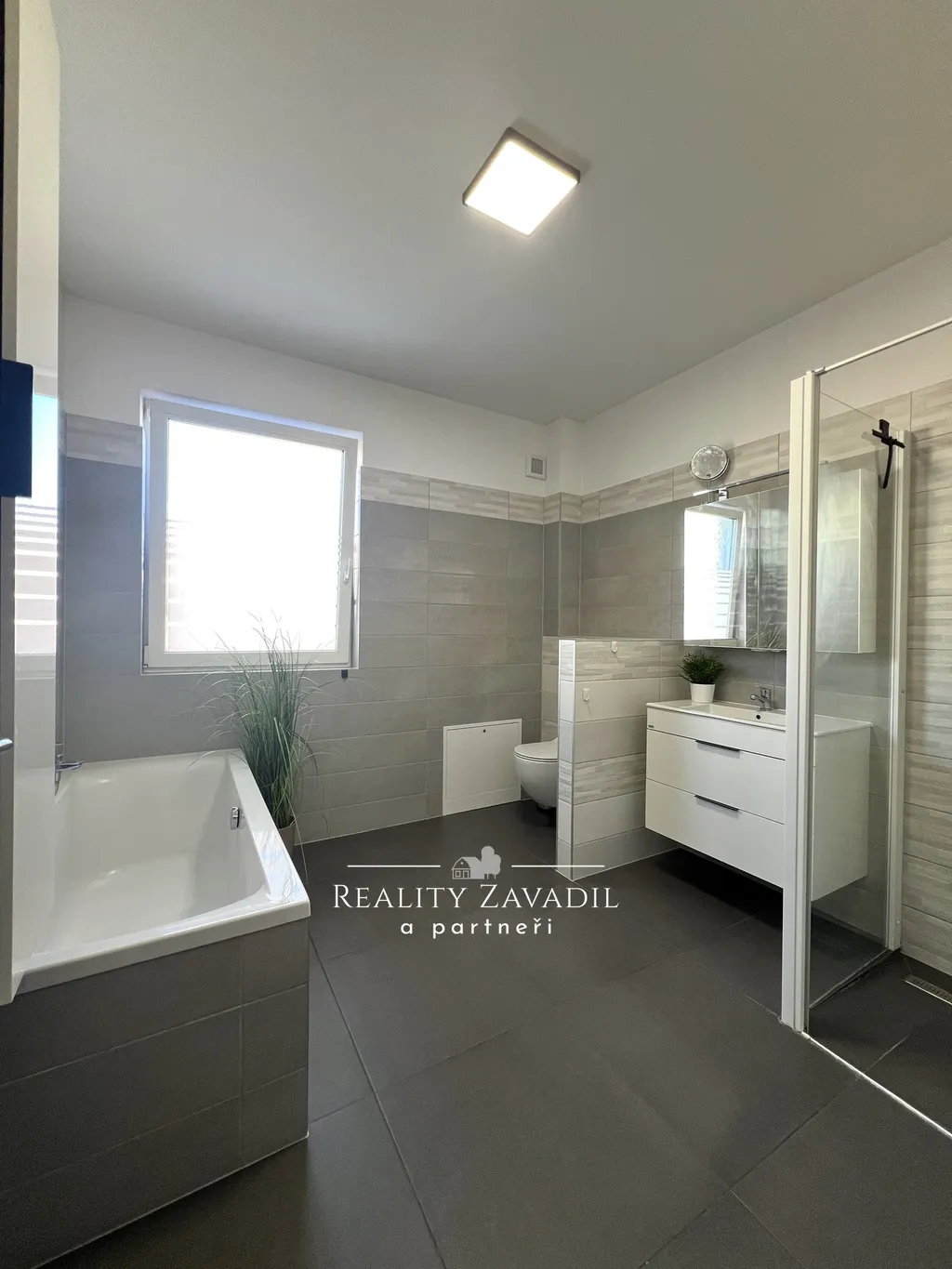 • koupelna s vanou, sprchovým koutem, umyvadlem a toaletou