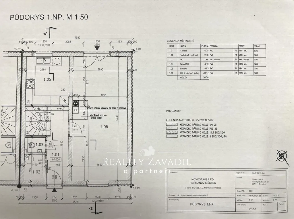 • technická místnost s elektrickým bojlerem na ohřev vody, pračkou, sušičkou a technologií podlahového vytápění